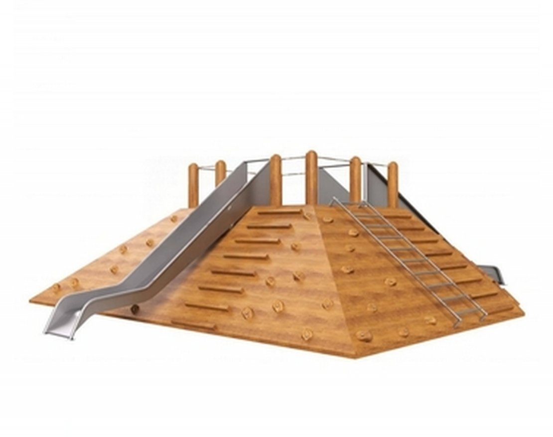 Основные элементы: игровая платформа, прямые горки h1500 мм, лестница, лазательные элементы, скалодромы.