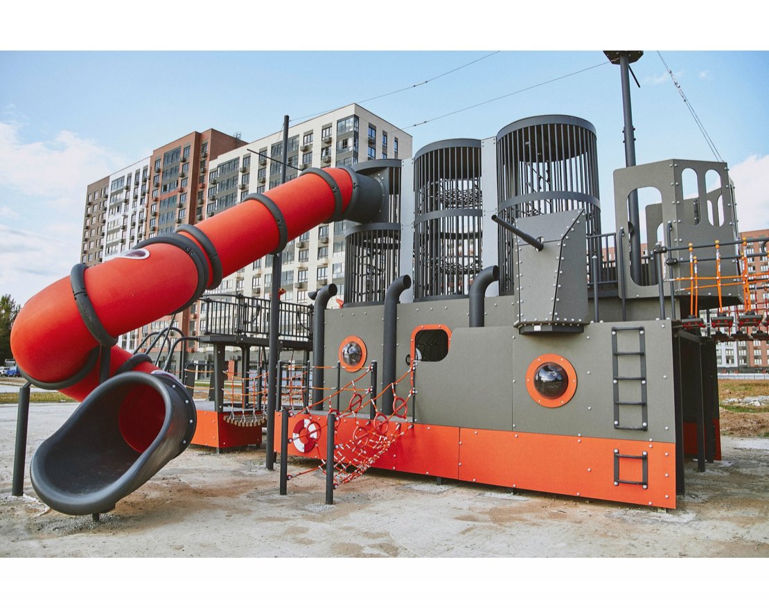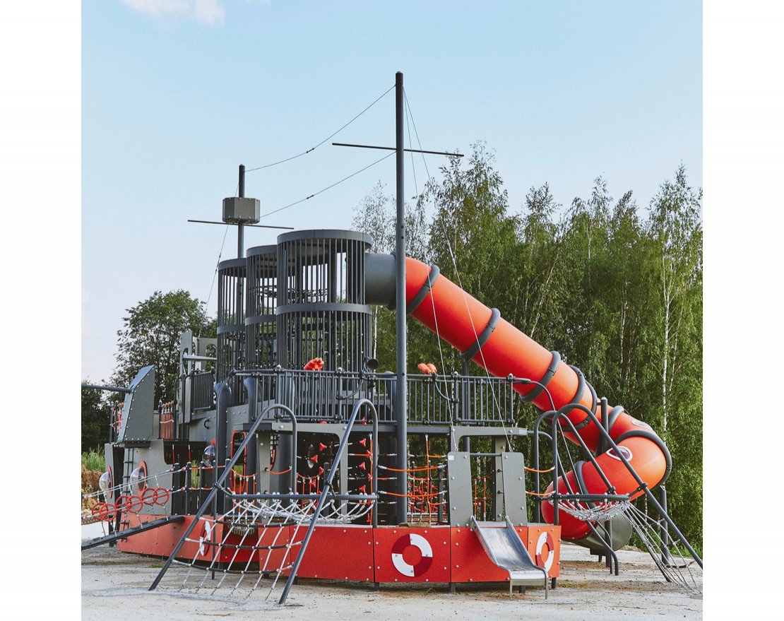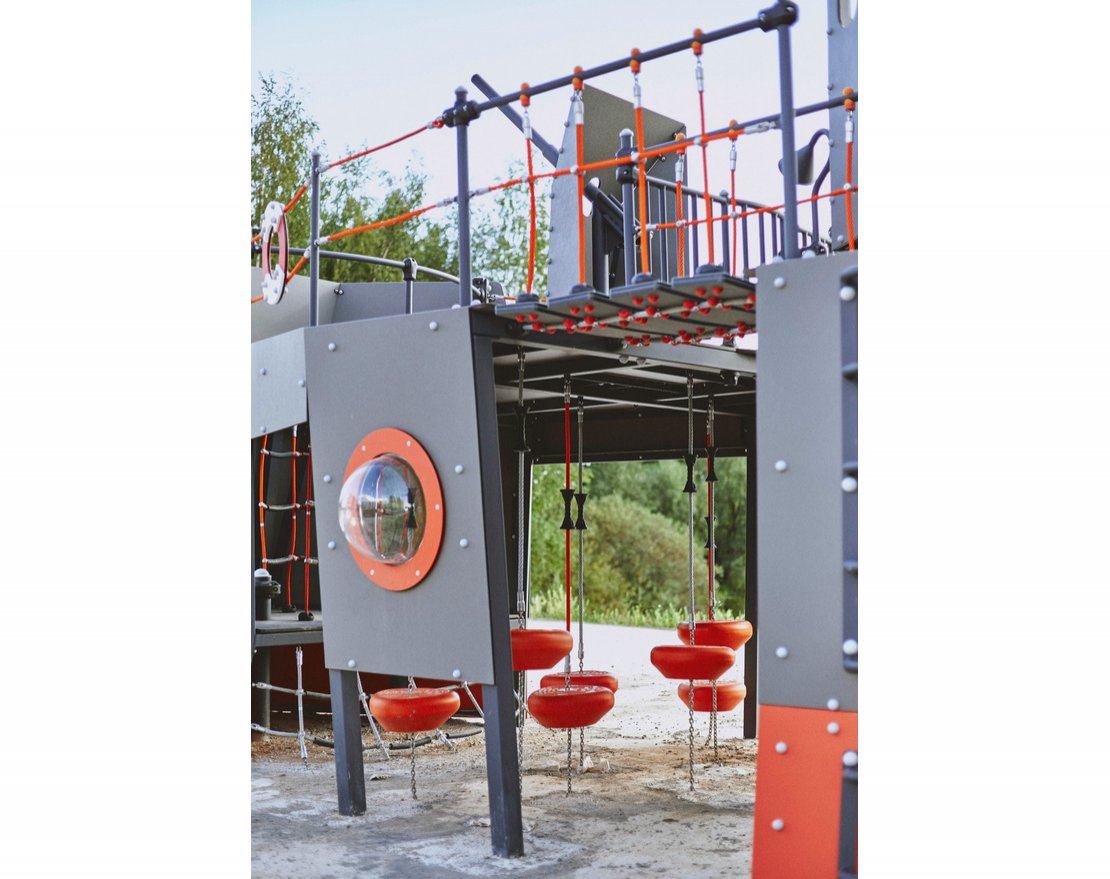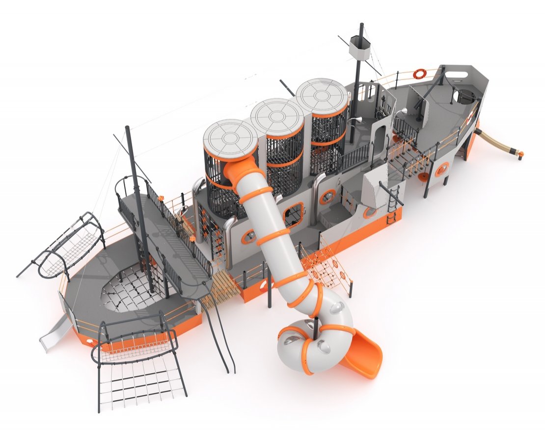 Представляет собой крейсер. Оснащен канатными сетками-переходами, лестницами, подвесными мостиками, трубами для лазания, пластиковыми уступами и металлическими горками с защитными бортиками. Также в конструкции установлены различные игровые элементы: подзорная труба, бинокль, иллюминаторы, мачта, трап, артиллерийское орудие, эхолоты и лодки, изготовленные из стальных труб и сеток.