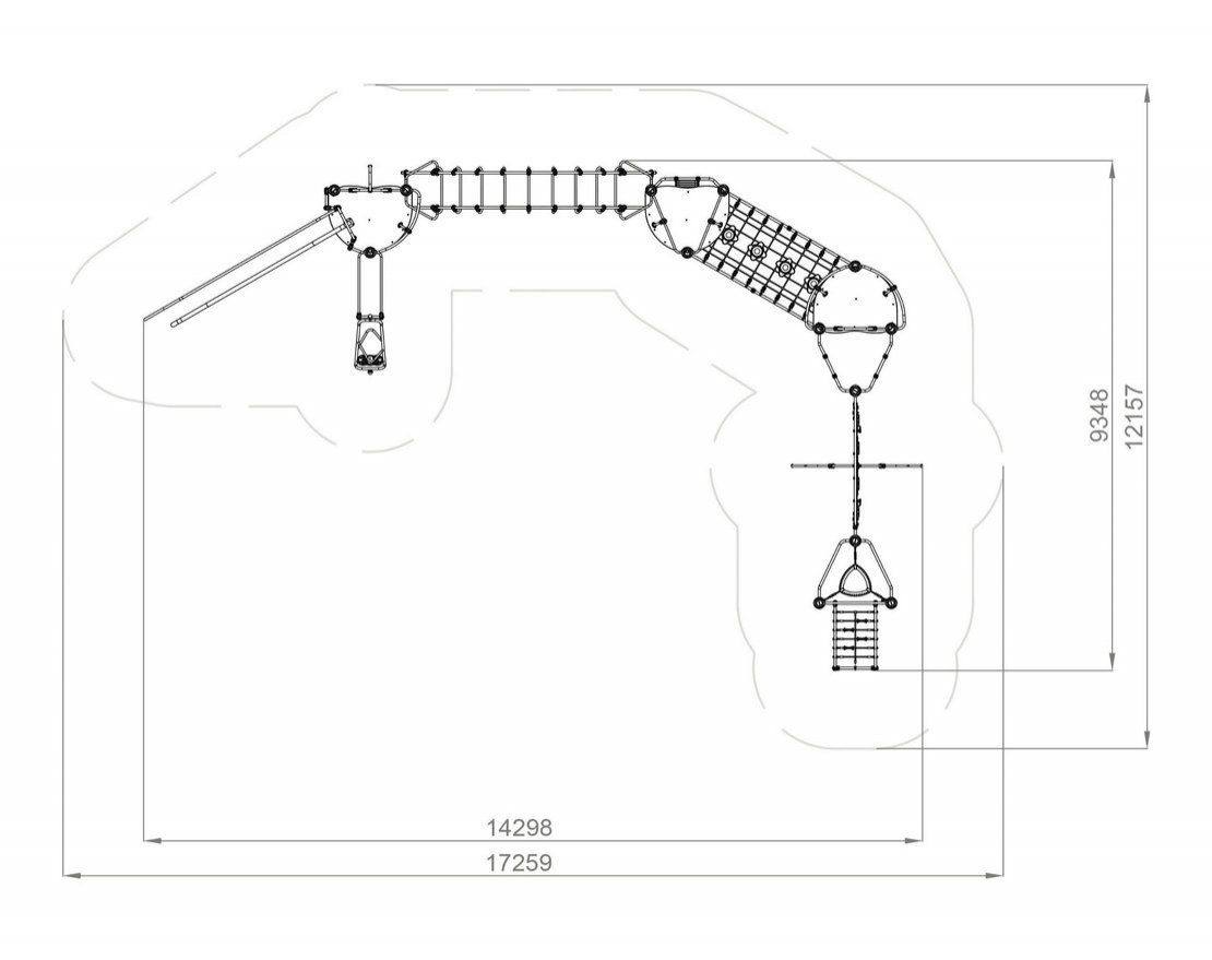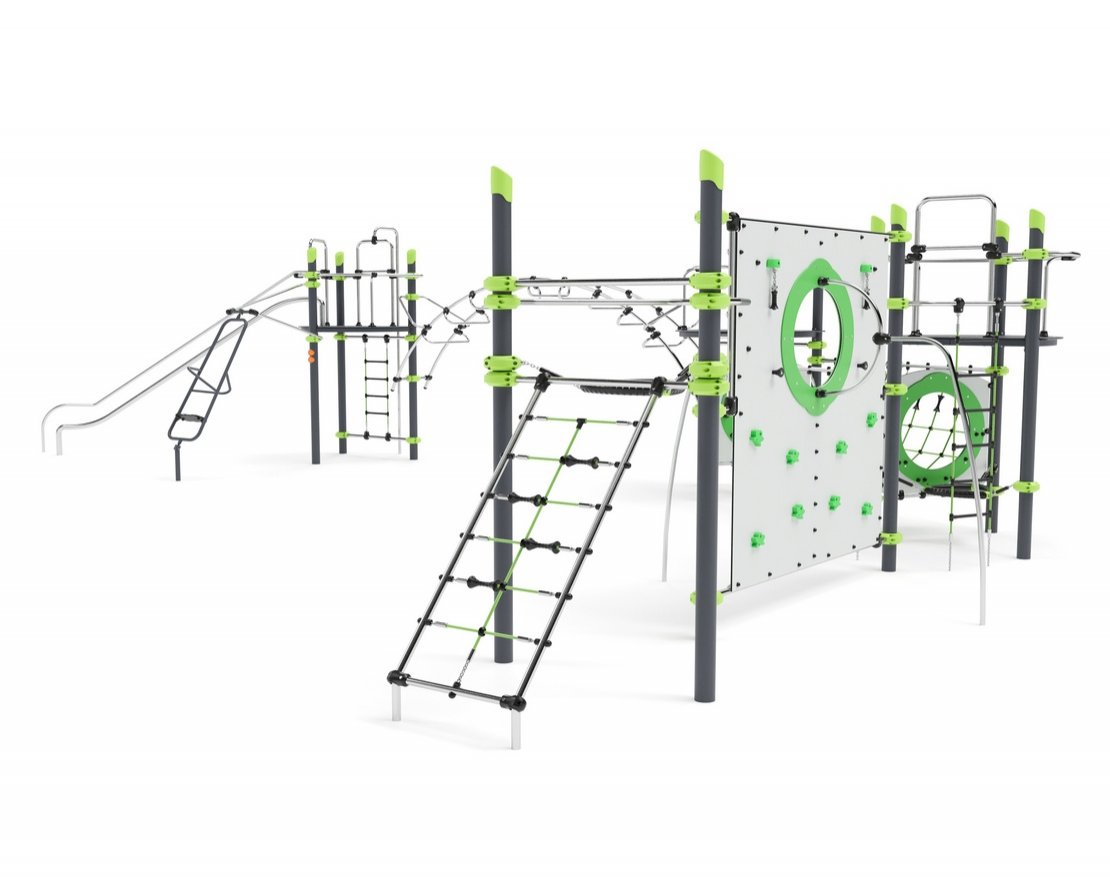 Представляет собой конструкцию, состоящую из элементов, направленных на развитие различных групп мышц. Комплекс оснащен лестницами, трубами для лазания, канатным переходом и панелью со скалодромными зацепами.