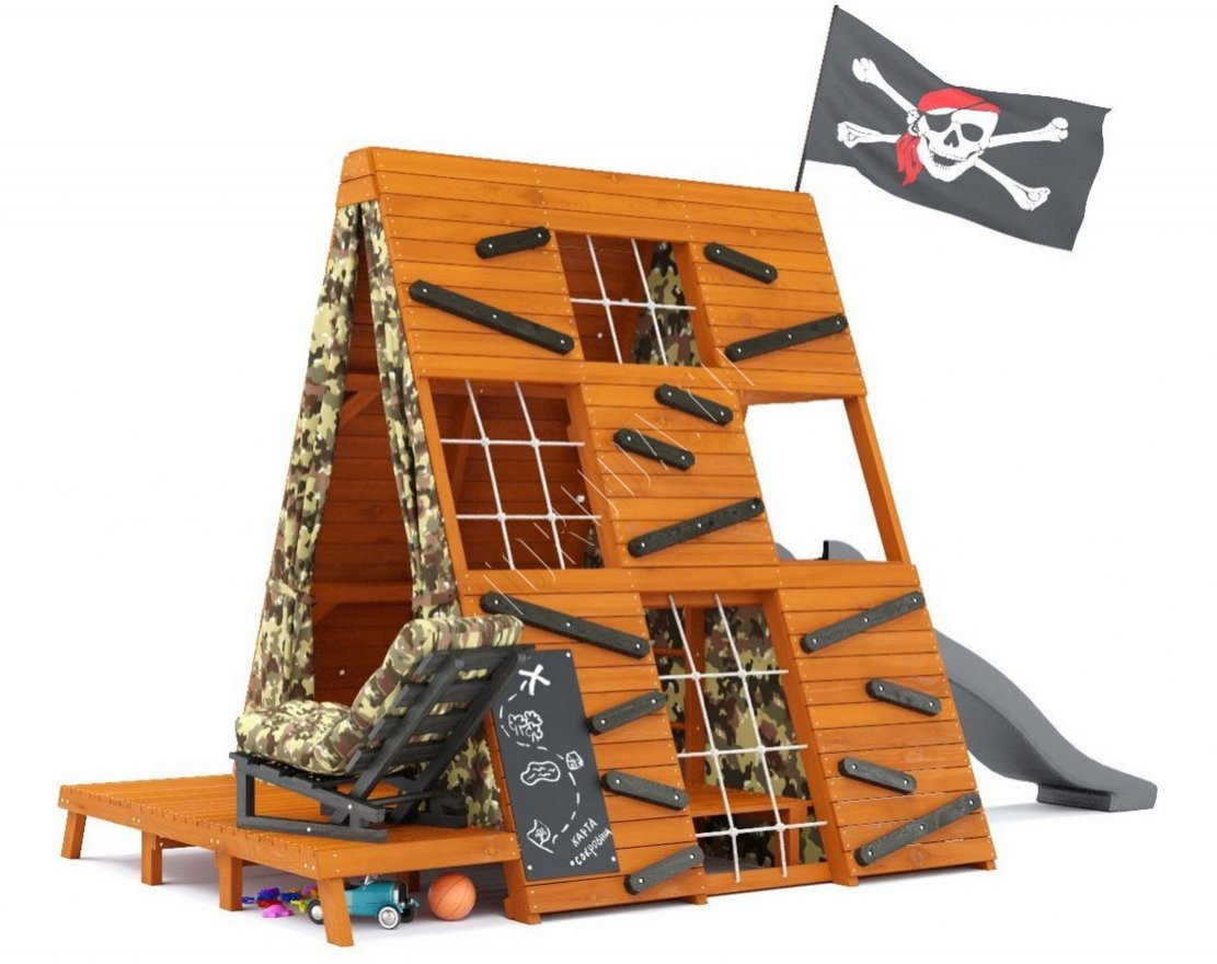 Спортивный домик с креслом - уникальный игровой комплекс для детей и взрослых. Этот домик выполнен в виде настоящего дома с игровым пространством внутри. В домике есть внутренний деревянный пол, на который можно закинуть одеяла и подушки, создав тем самым уютное место для игр.