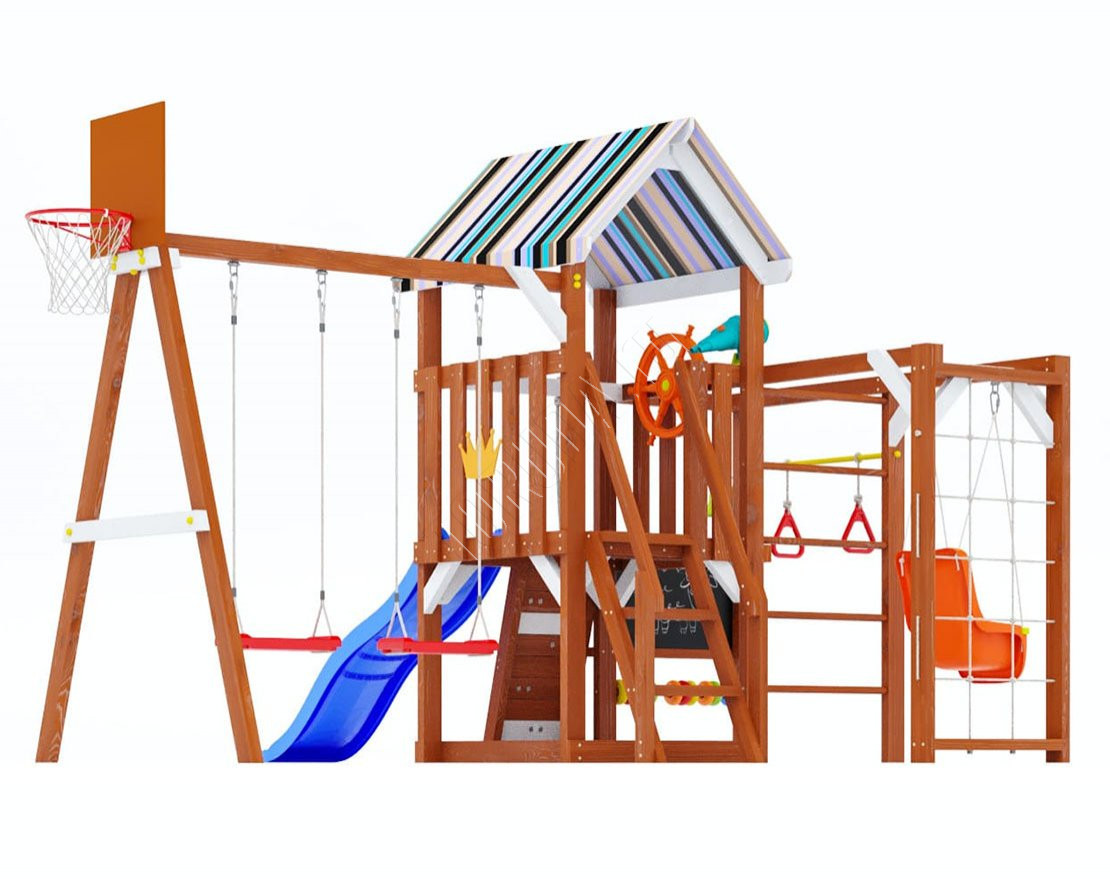 Площадка Борге 12 обладает довольно широким функционалом (который по желанию можно легко расширить). Детская площадка предназначена для дачи, коттеджа.
