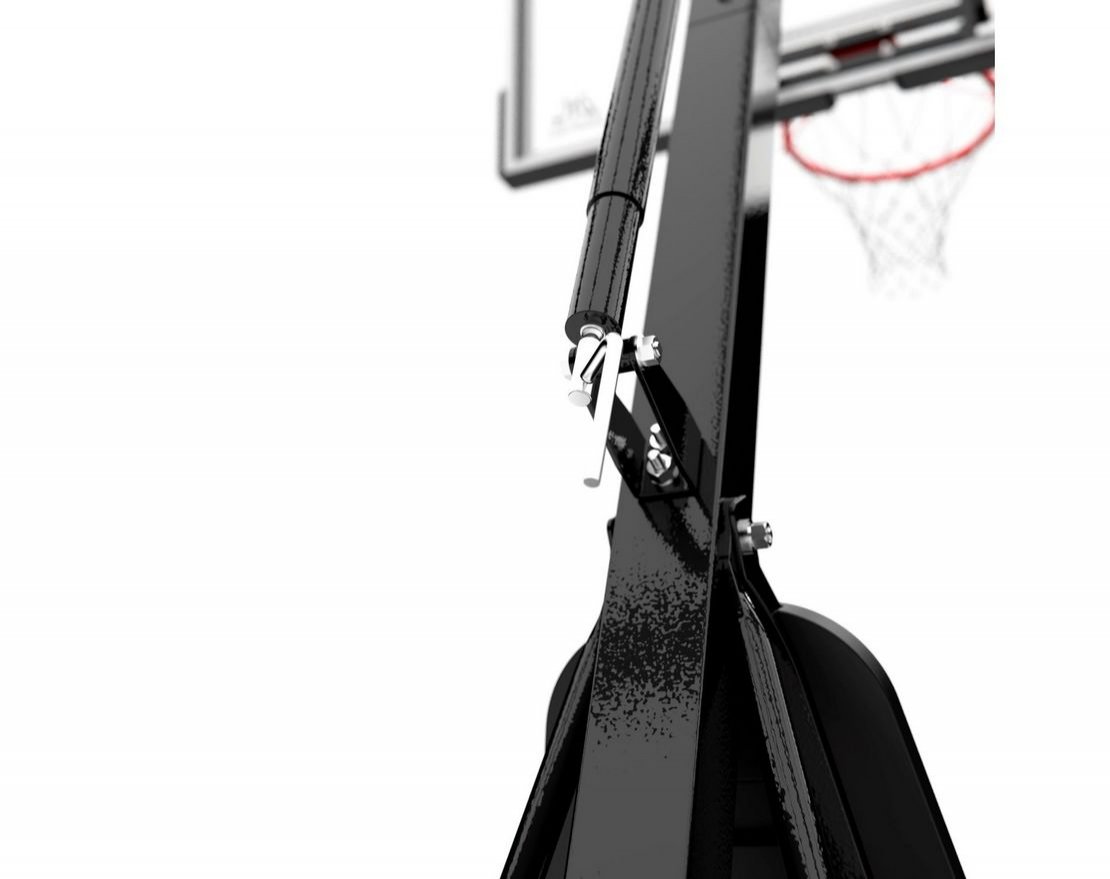 Портативная баскетбольная стойка совмещает в себе мобильность и обеспечивает отскок мяча, как на профессиональной площадке. Благодаря усиленной конструкции удалось добиться увеличенного вылета щита, при сохранении компактности размещения. Он регулируется в диапазоне от 230 до 305 см, имеет защитное покрытие Poly Pade в нижней части. В основание стойки (объем 114,7 л) необходимо залить воду или засыпать песок в качестве утяжелителя.
