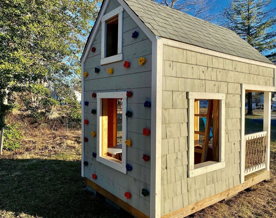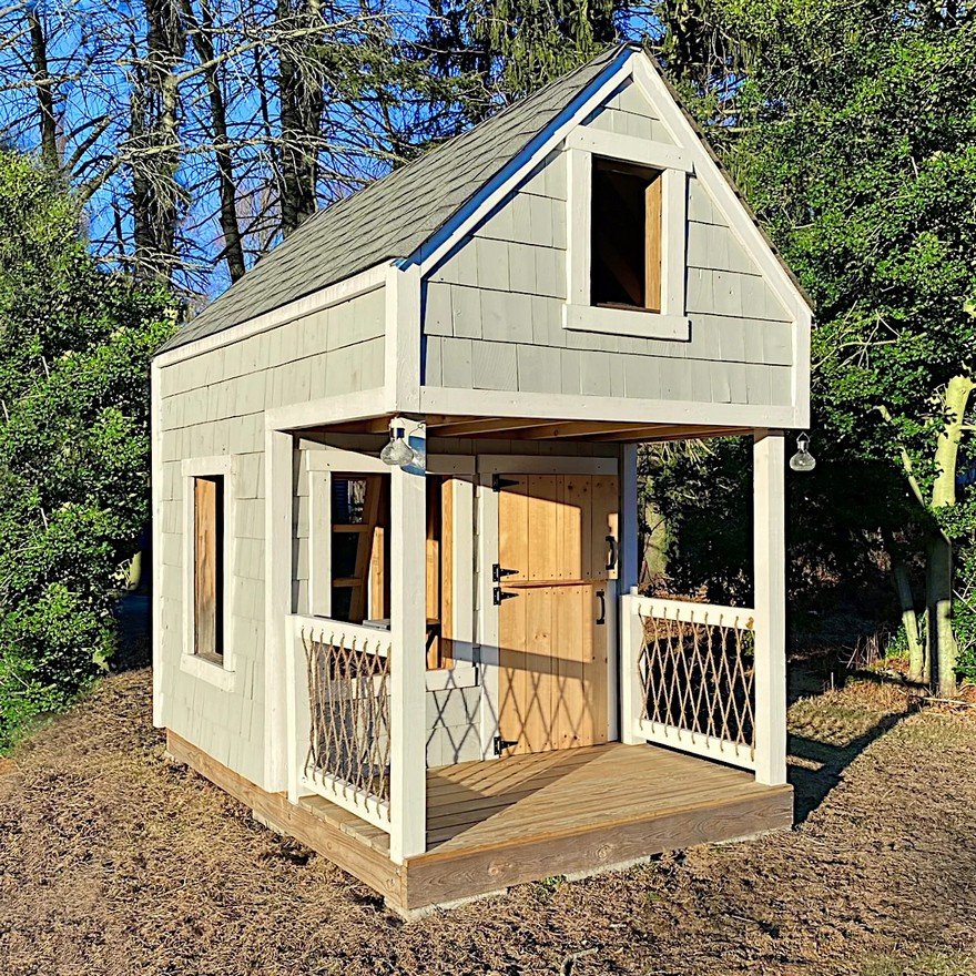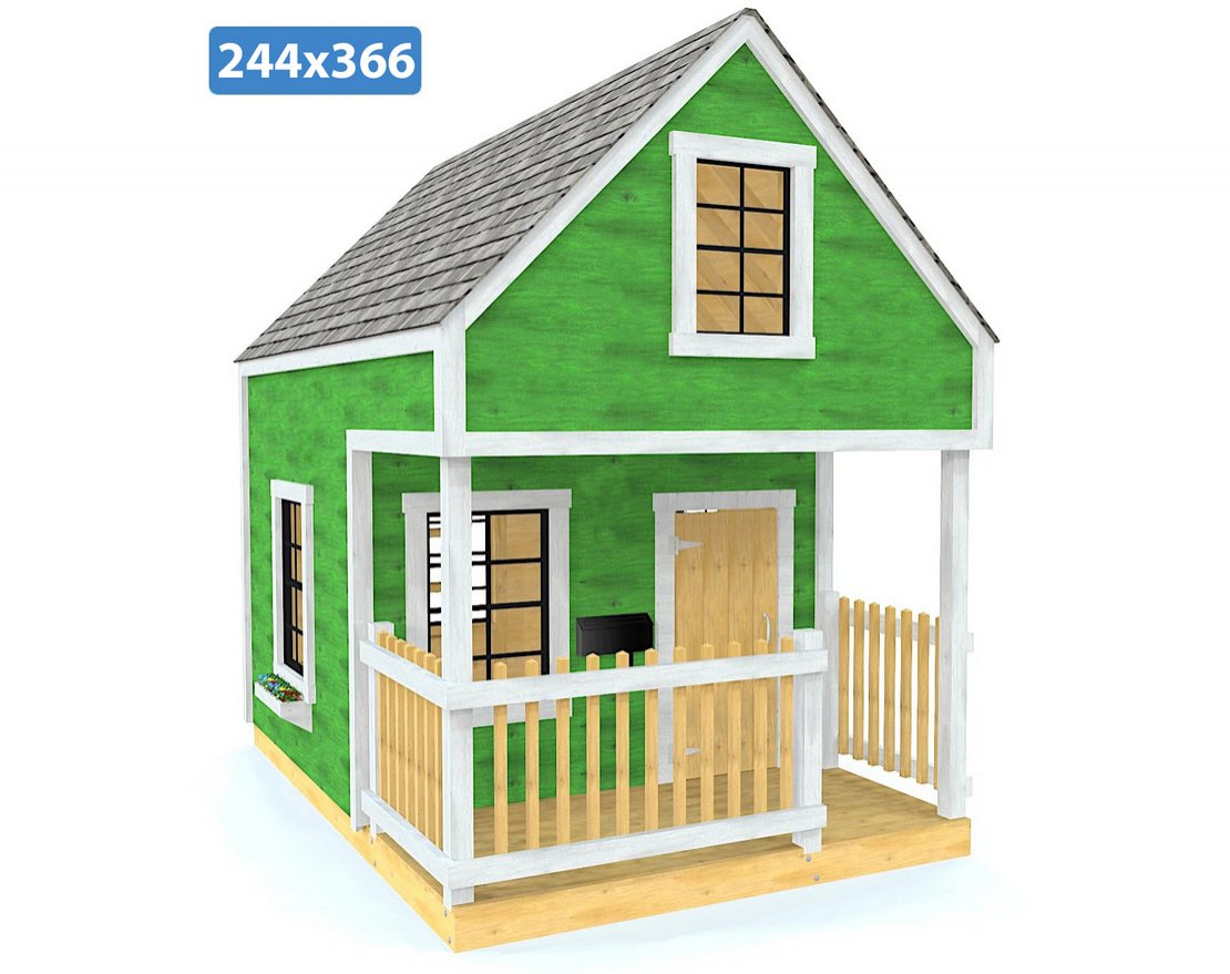 Игровой домик с мансардой и крыльцом способен вписаться в более ограниченные пространства. Веранда и нависающий чердак придают этому игровому домику больше характера и делают его веселым местом для вечеринки! Также можно установить шесть одностворчатых окон, пропускающих много солнечного света и свежего воздуха.
