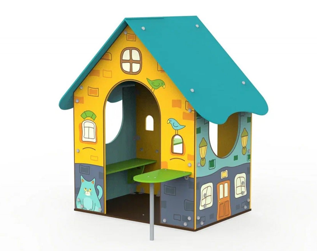 Домик предназначен для организации детского досуга на детских площадках в детских садах, школах, парках, дворах и местах отдыха. Представляет собой сборно-разборную конструкцию для игры и отдыха ребенка.
