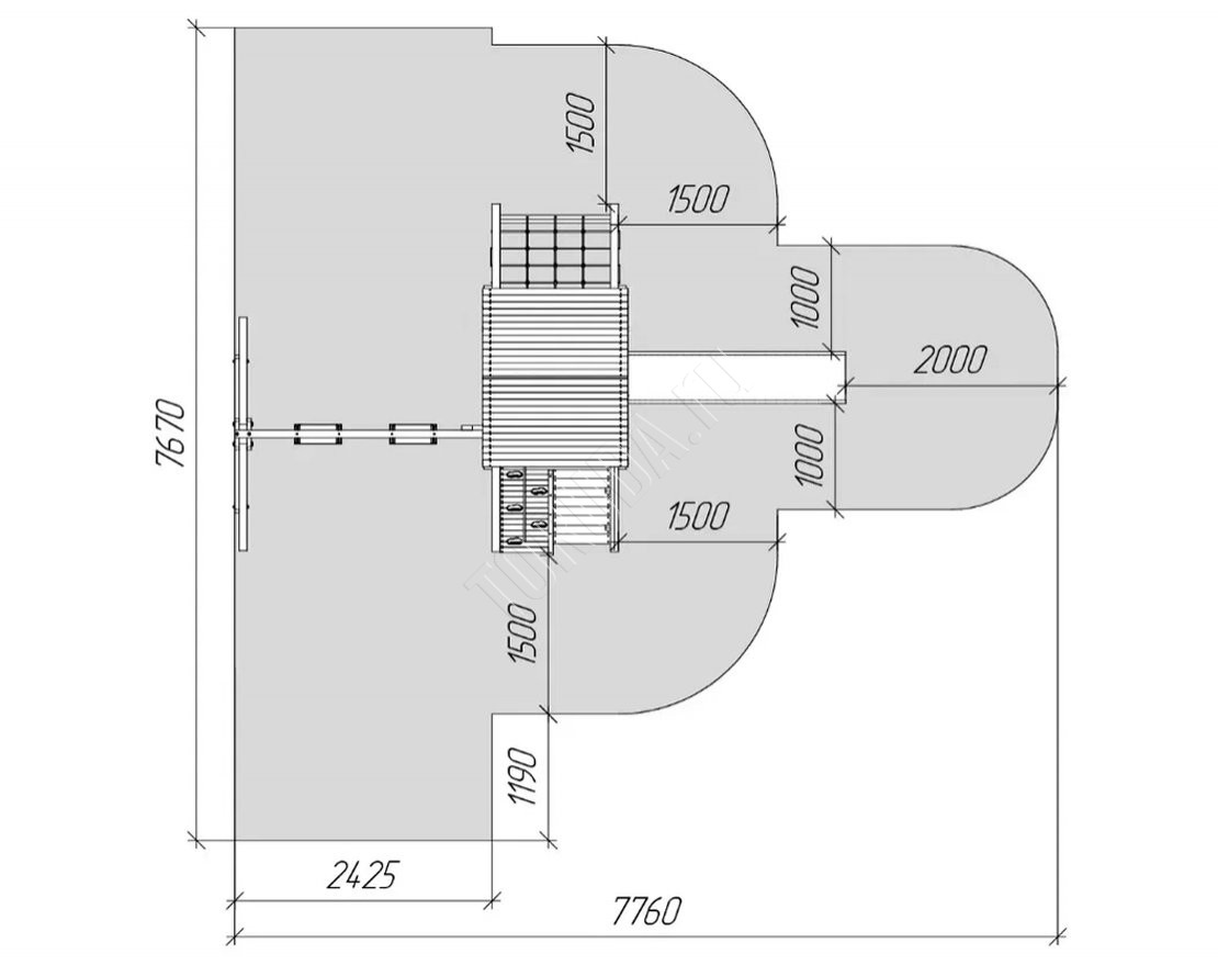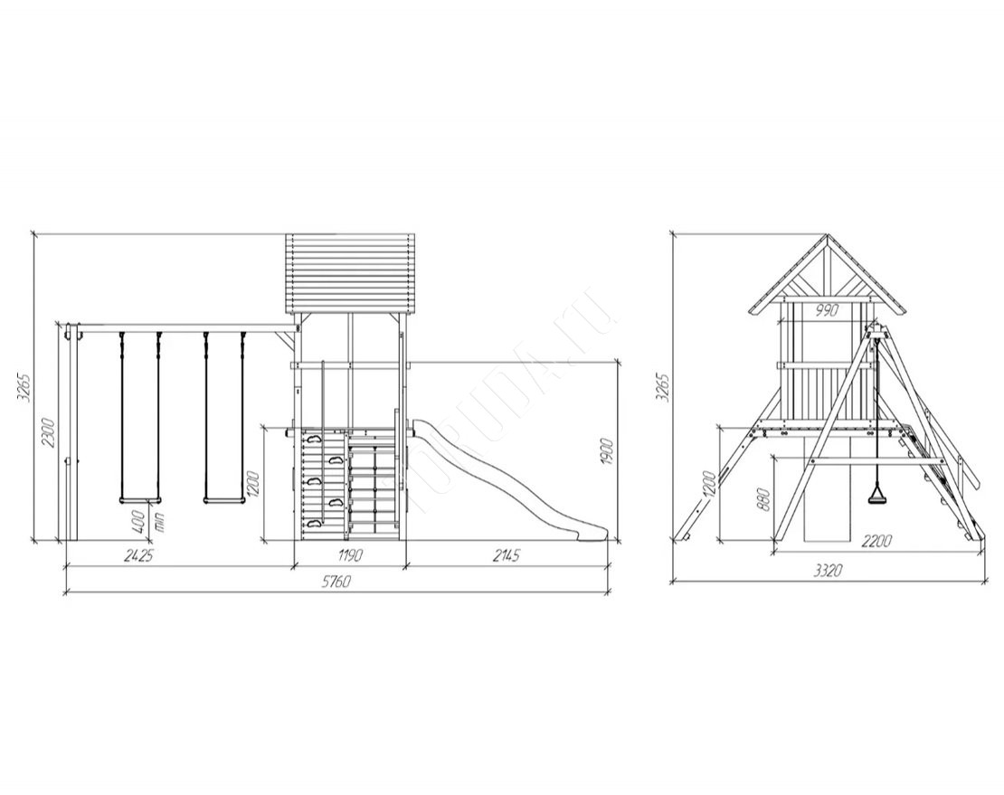 Продуманное игровое пространство, которое сочетает активные развлечения и спортивные элементы. Подходит для дачи и загородного дома, обеспечивая безопасность и комфорт во время активных игр.