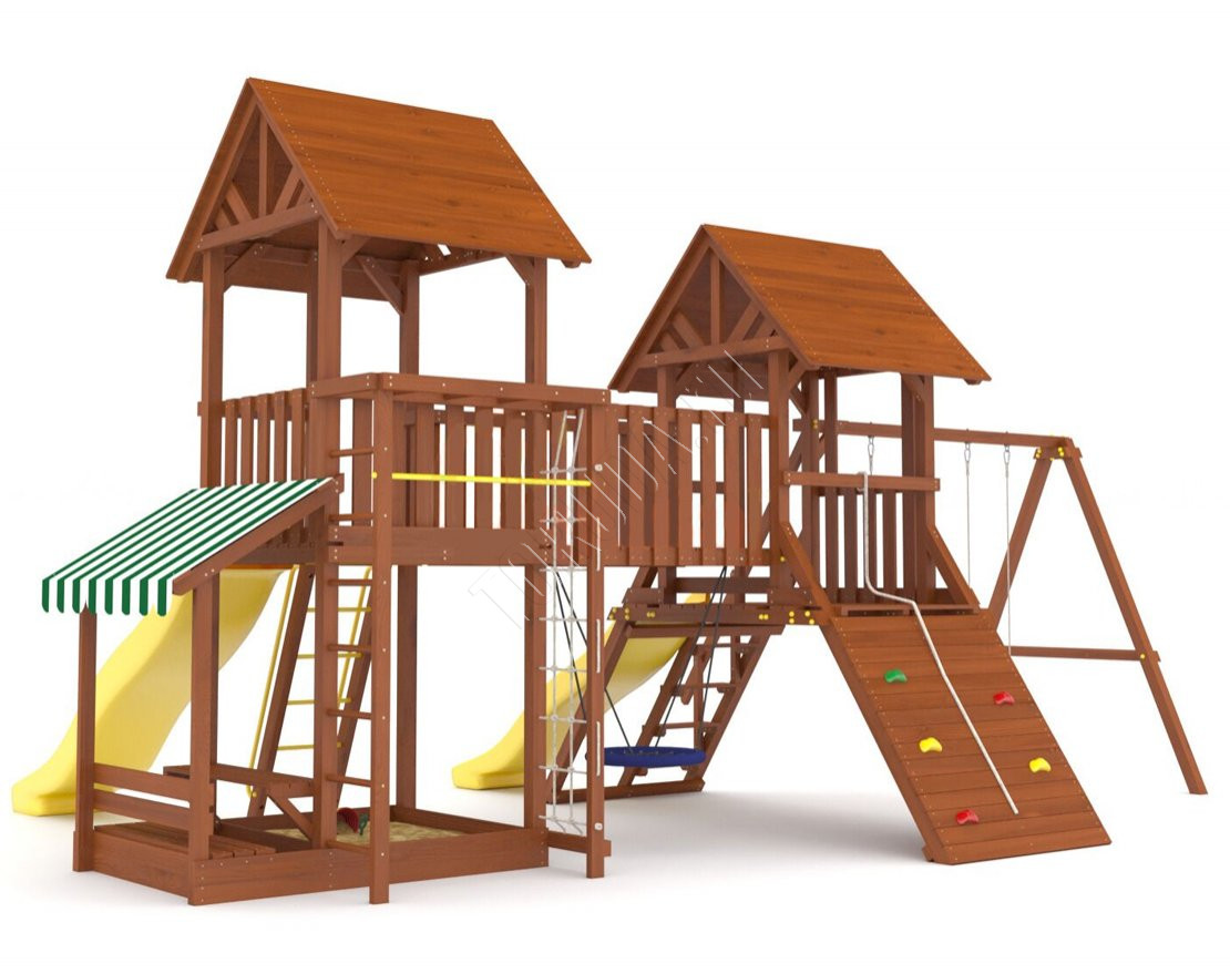 Это просторный и многофункциональный игровой комплекс, который станет центром активных развлечений для детей. Он сочетает в себе игровые, спортивные и развивающие элементы, обеспечивая интересный и безопасный досуг на свежем воздухе.