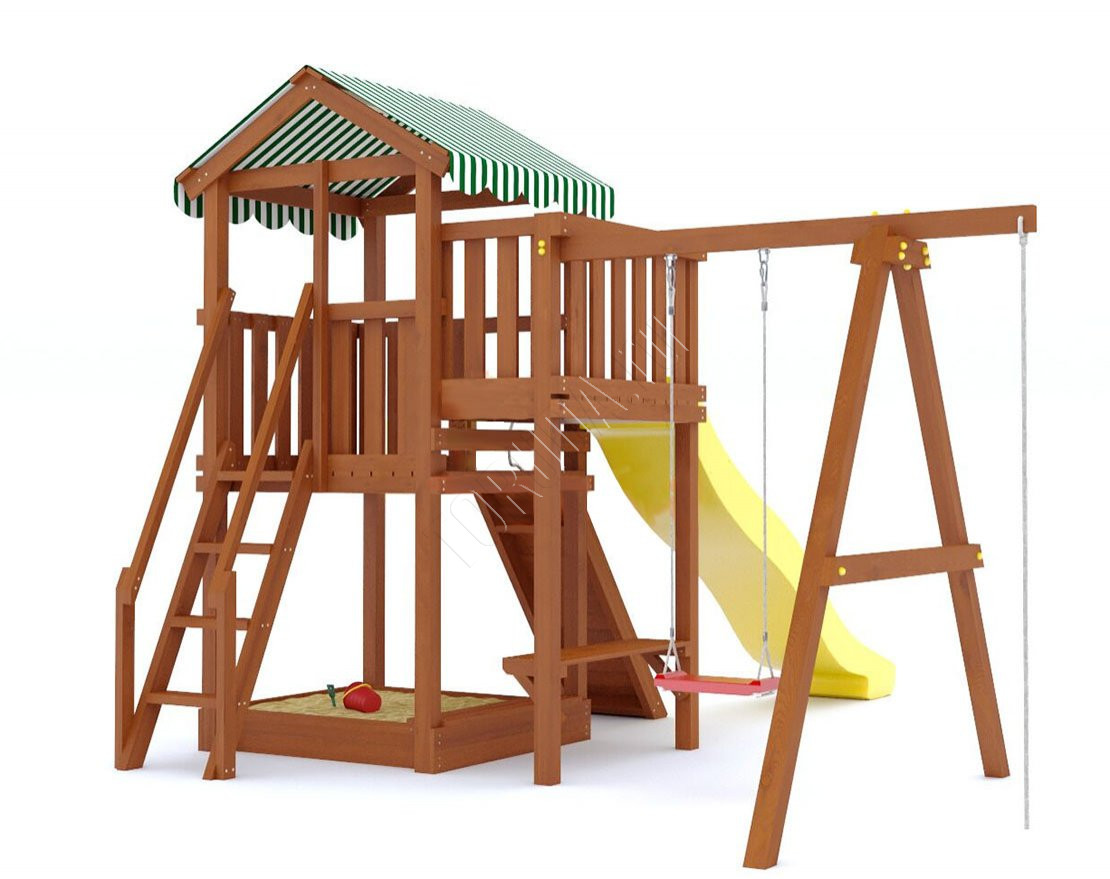 Детская игровая площадка Гарда 1 (Шоколад и Милк) - это универсальный детский игровой комплекс, спроектированный для использования в любую погоду. Площадка выполнена из натурального дерева, что подчеркивает её экологичность.