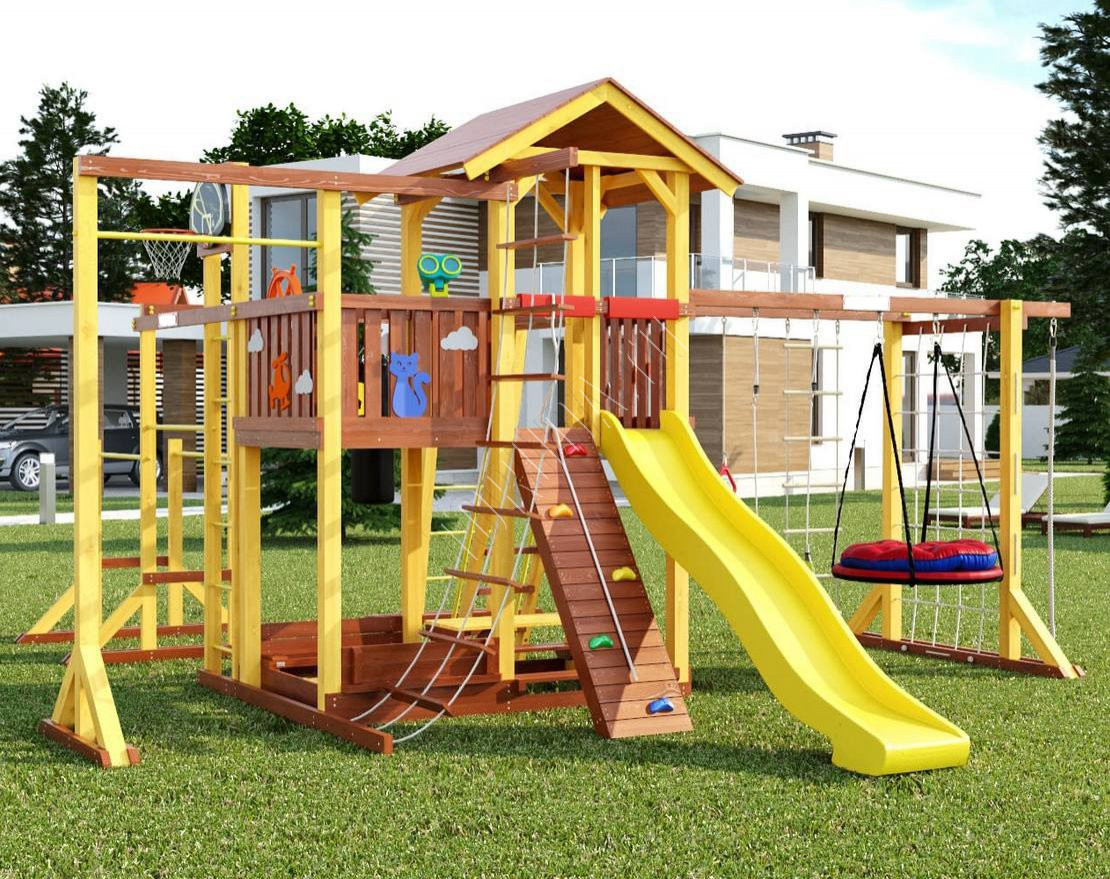 Площадка создана с акцентом на надёжность, качество и долговечность. Она оснащена современными и безопасными элементами, которые подходят для активных игр всех возрастов.