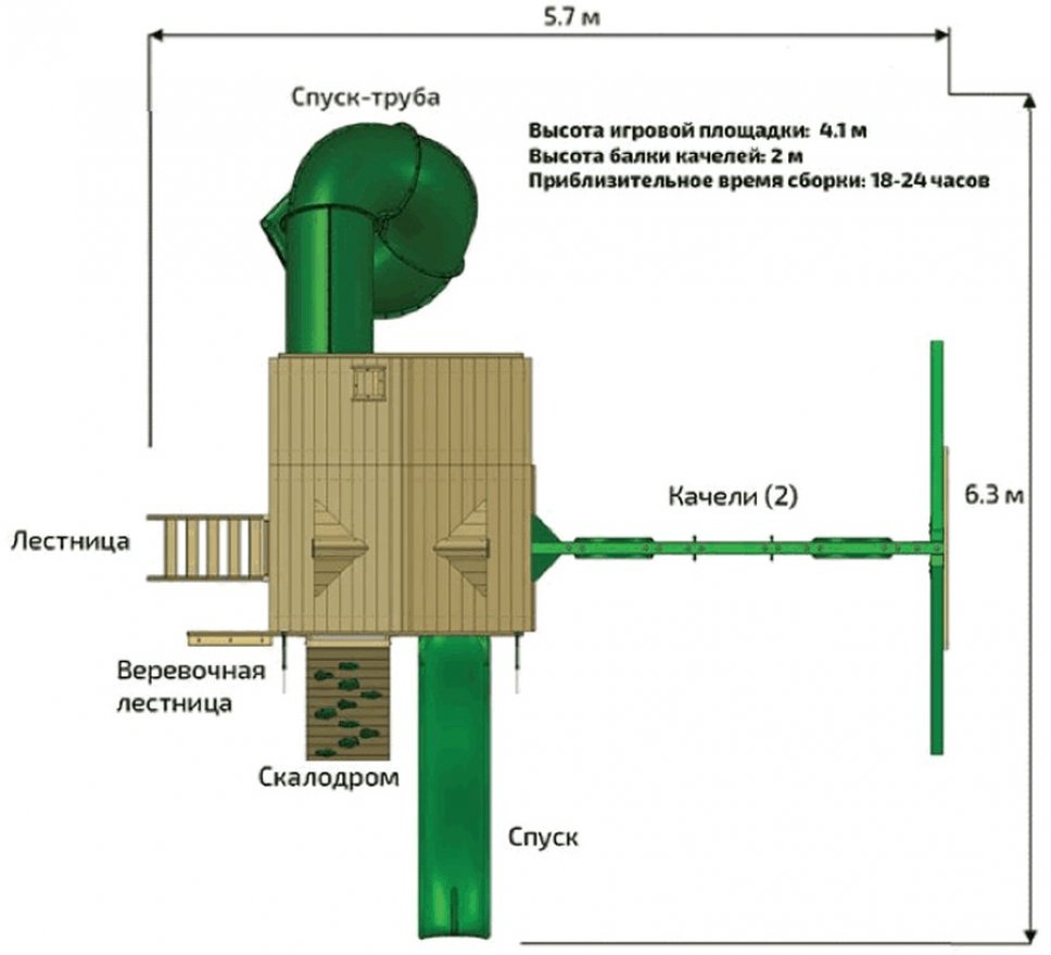 Высокая и красивая игровая площадка Эверест с двумя фортами на разной высоте и двумя спусками отлично впишется на любом участке и будет радовать не одно поколение детишек. Площадка Эверест способна прослужить долгие годы даже в условиях самой интенсивной эксплуатации, ведь для изготовления элементов горки используются высококачественные материалы: пропитанная защитными составами древесина сосны, гальванизированная сталь, морозостойкий пластик.