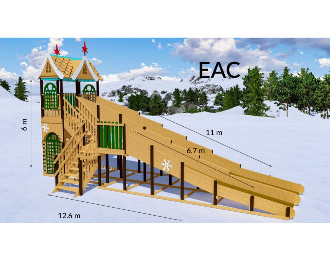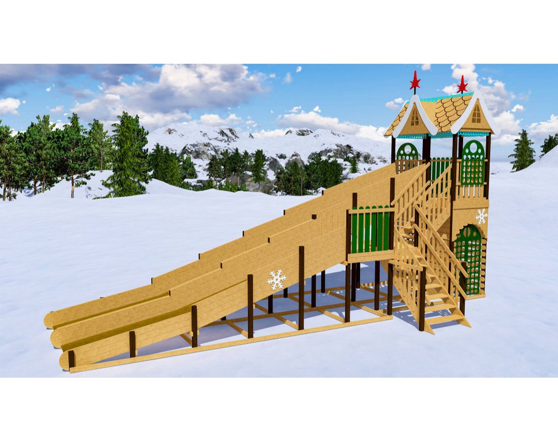 - Праздничный дизайн — еще один повод купить зимнюю горку Аляска 4. Она органично дополнит территорию торгово-развлекательного центра или рождественской ярмарки.