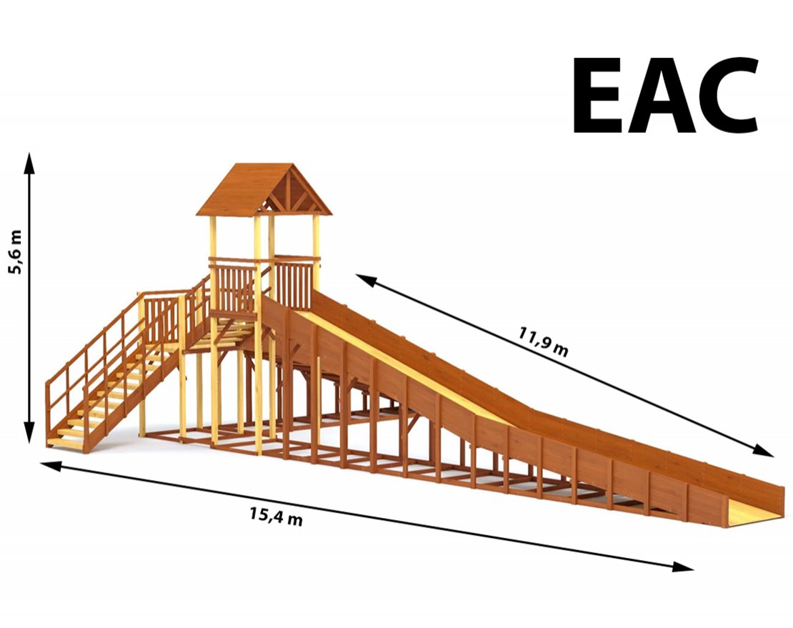 Зимняя горка сделана из качественного клееного бруса – это экологичный, долговечный и прочный материал с красивой древесной фактурой. Конструкция получается устойчивой и удобной, а для большей прочности поверхность покрывается специальным лакокрасочным составом, который повышает стойкость к внешним воздействиям. Покрытие имеет разрешающий сертификат для использования на детских площадках.