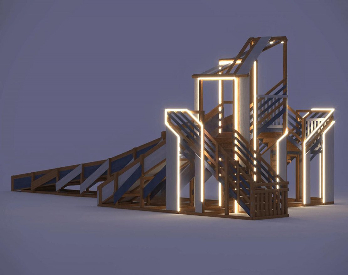 Ограждение входа на горку, подсветка, подступеньки являются опцией и заказываются отдельно.