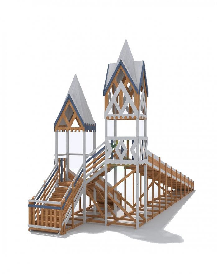 Она изготовлена из высококачественных материалов с соблюдением всех необходимых требований. Горка отличается не только прочностью и долговечностью, но и оригинальным дизайном. Её изящные, стремящиеся вверх контуры напоминают башни средневековых замков, создавая атмосферу настоящего зимнего волшебства.