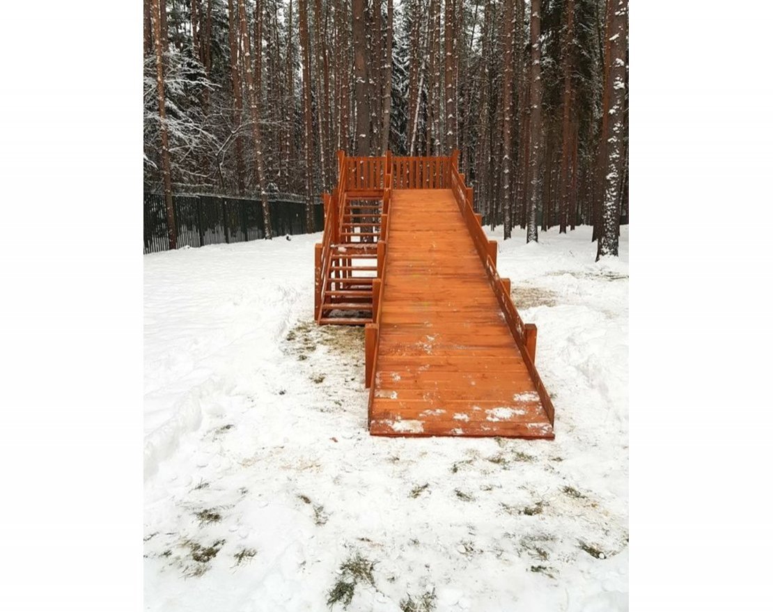 Модуль имеет приятный дизайн, который представлен в виде тёплого цветового оформления. Несущее изделие можно установить в общественном парке, возле частного дома, многоэтажек. Ведь благодаря тому, что лестница и скат располагаются перпендикулярно друг к другу, модуль не занимает лишнее место.