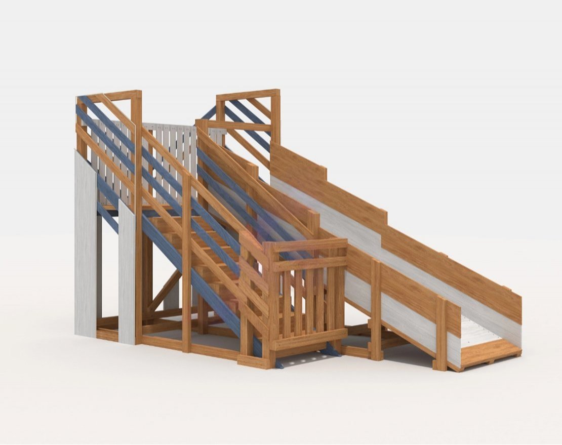 Эта деревянная горка выполнена в современном стиле. Сочетание светлого и темного оттенков окраски создает контраст и придает изделию интересный визуальный вид. Скат горки дополнен широким бортами в двухцветной окраске, делает процесс скольжения безопасным, весёлым и интересным.