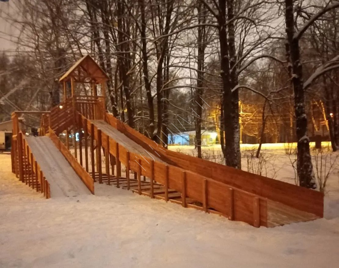 Активные дети готовы проводить время на свежем воздухе даже зимой. А деревянная горка «TORUDA Север» - 9/2 – лучшее сезонное предложение для просторных спортивно-игровых площадок.