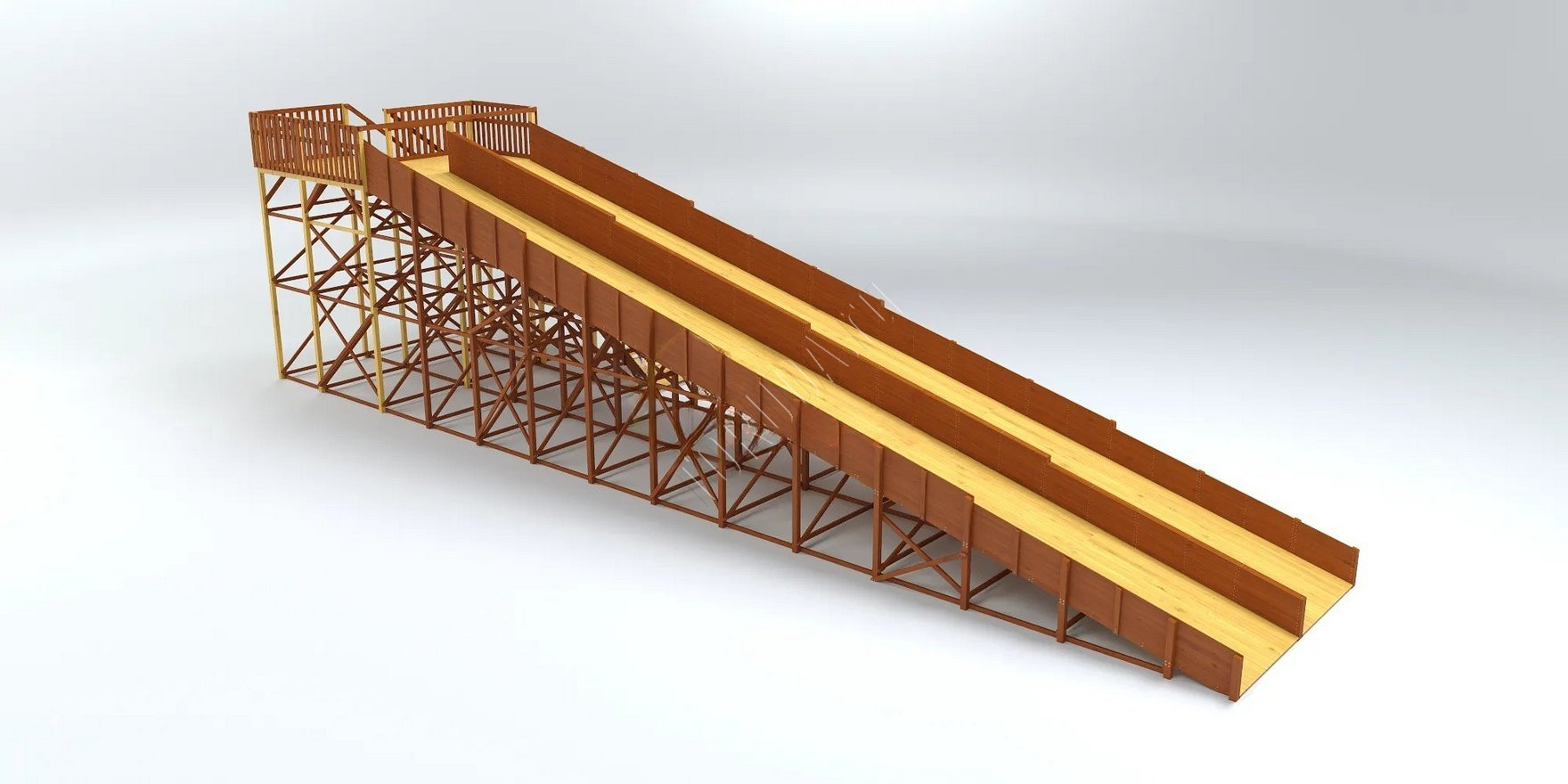 Зимняя горка сделана из качественного клееного бруса – это экологичный, долговечный и прочный материал с красивой древесной фактурой. Конструкция получается устойчивой и удобной, а для большей прочности поверхность покрывается специальным лакокрасочным составом, который повышает стойкость к внешним воздействиям. Покрытие имеет разрешающий сертификат для использования на детских площадках.