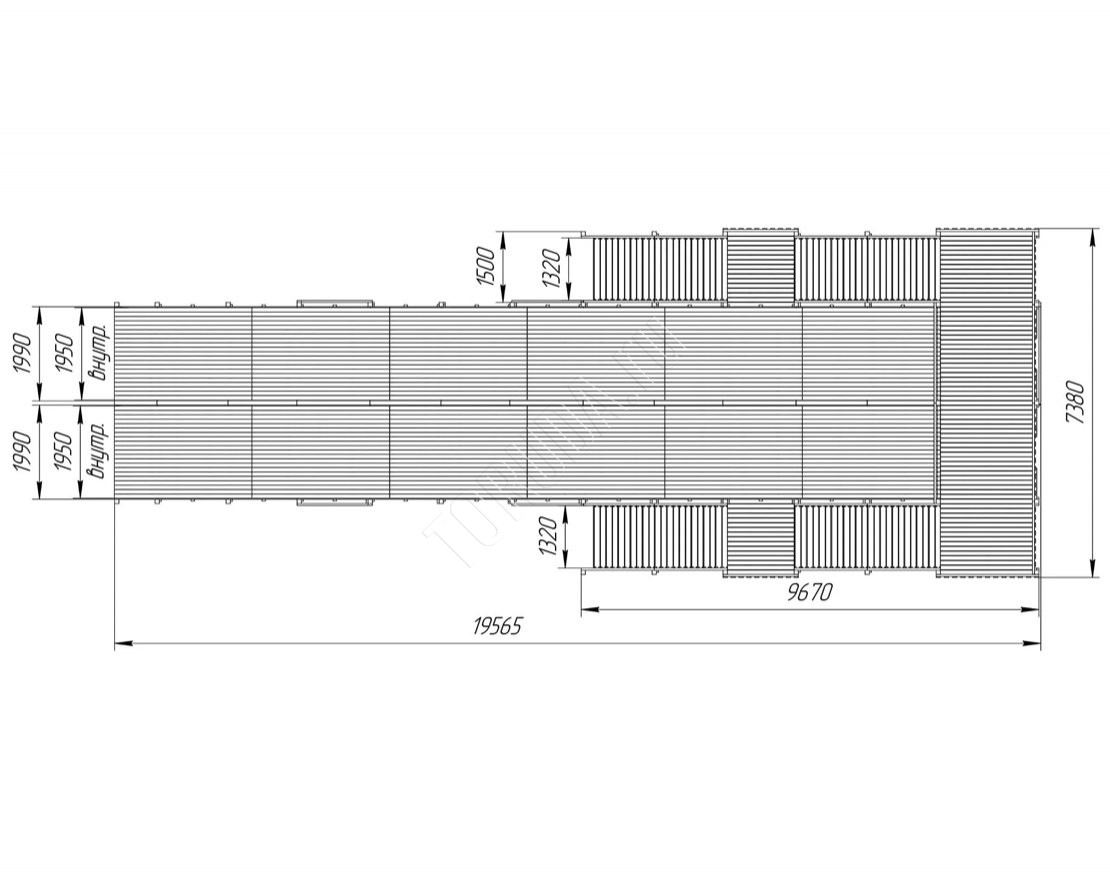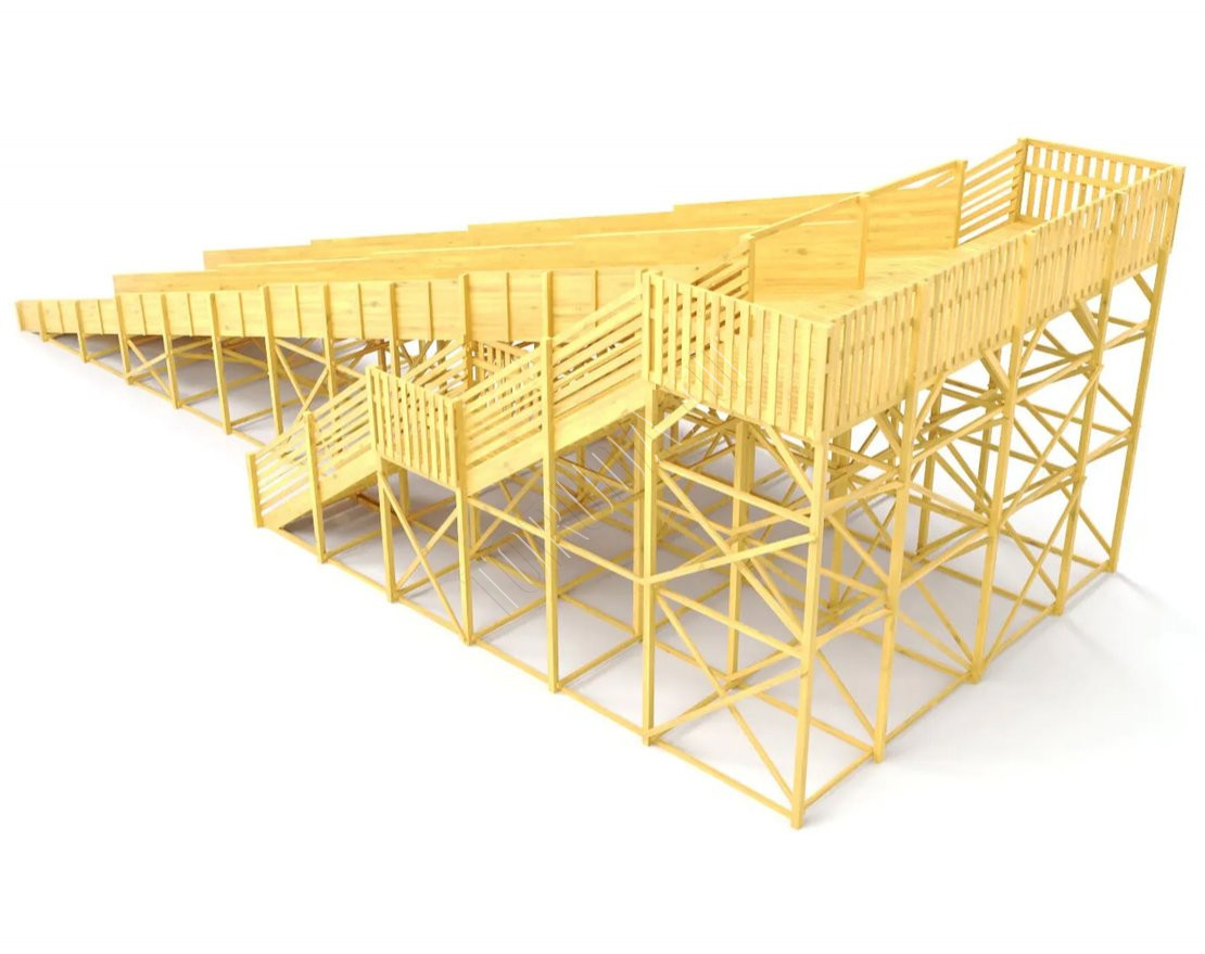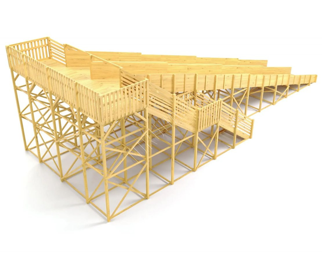 Каркас выполнен из клеёного бруса камерной сушки, все поверхности тщательно отшлифованы, углы скруглены, а крепежи закрыты заглушками.