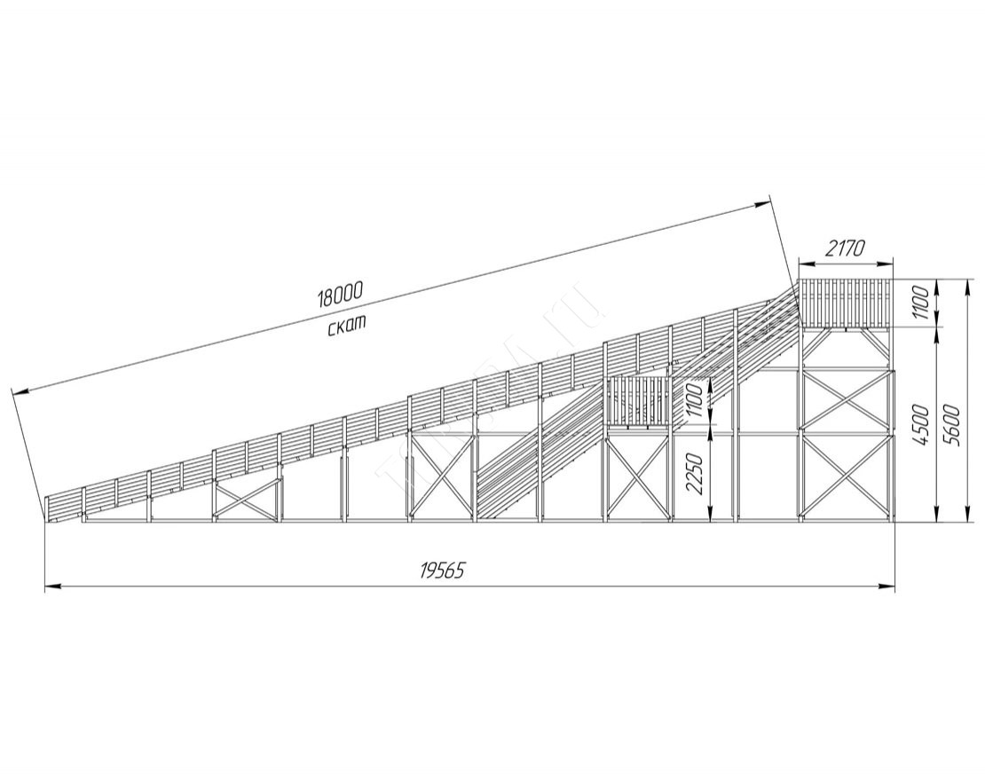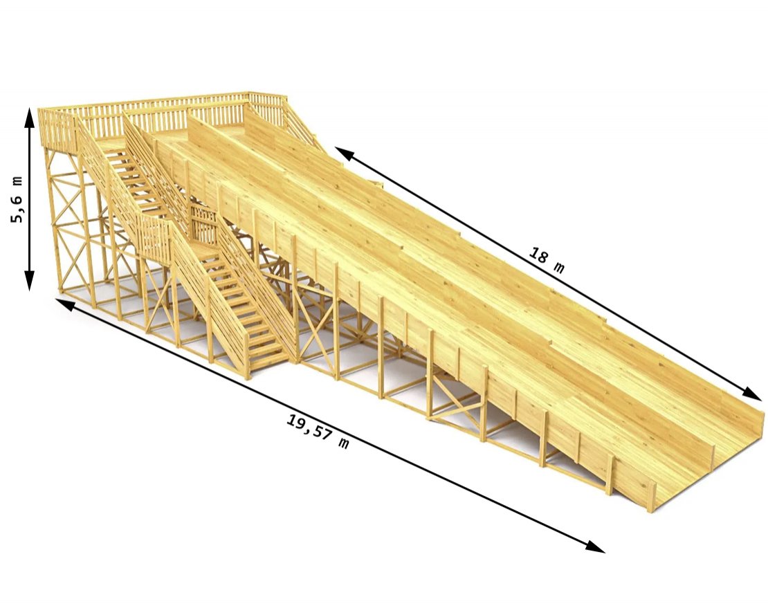 Зимняя горка — это настоящий центр зимних развлечений. Два ската длиной по 18 метров и широкие лестницы позволяют одновременно кататься целой компании детей.
