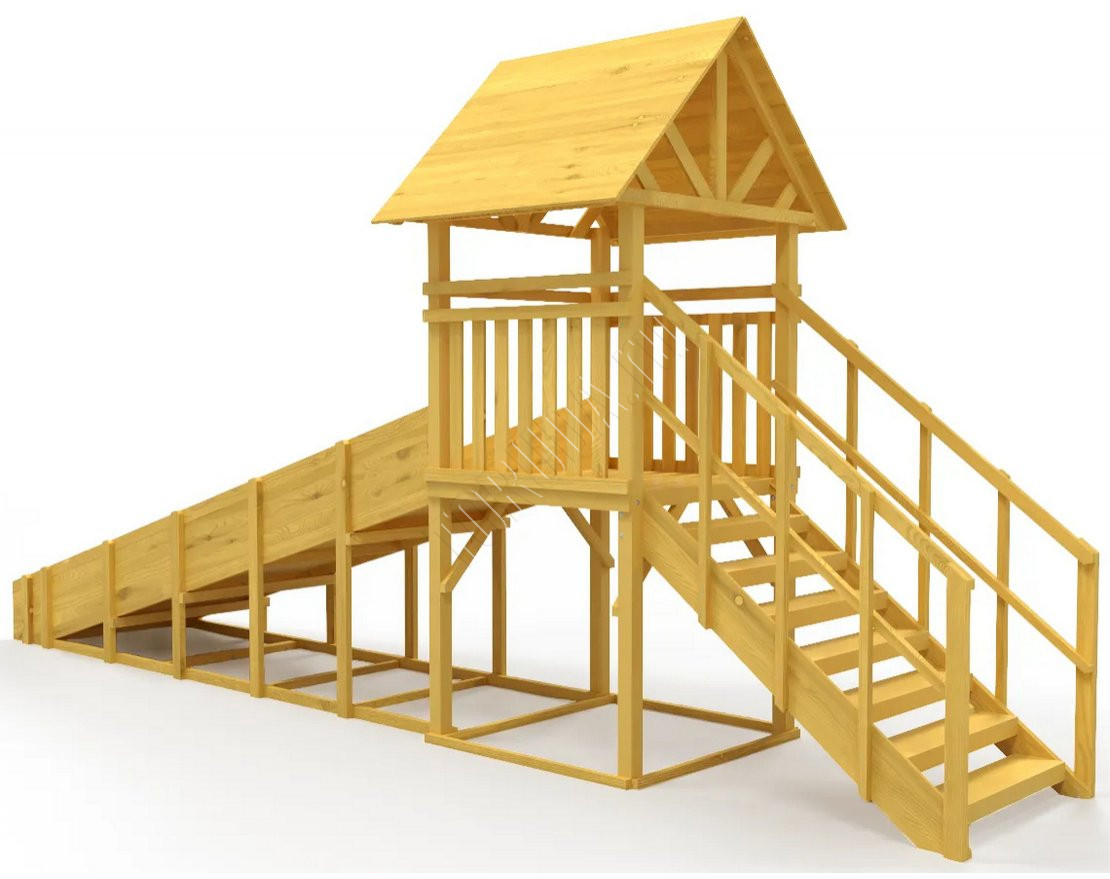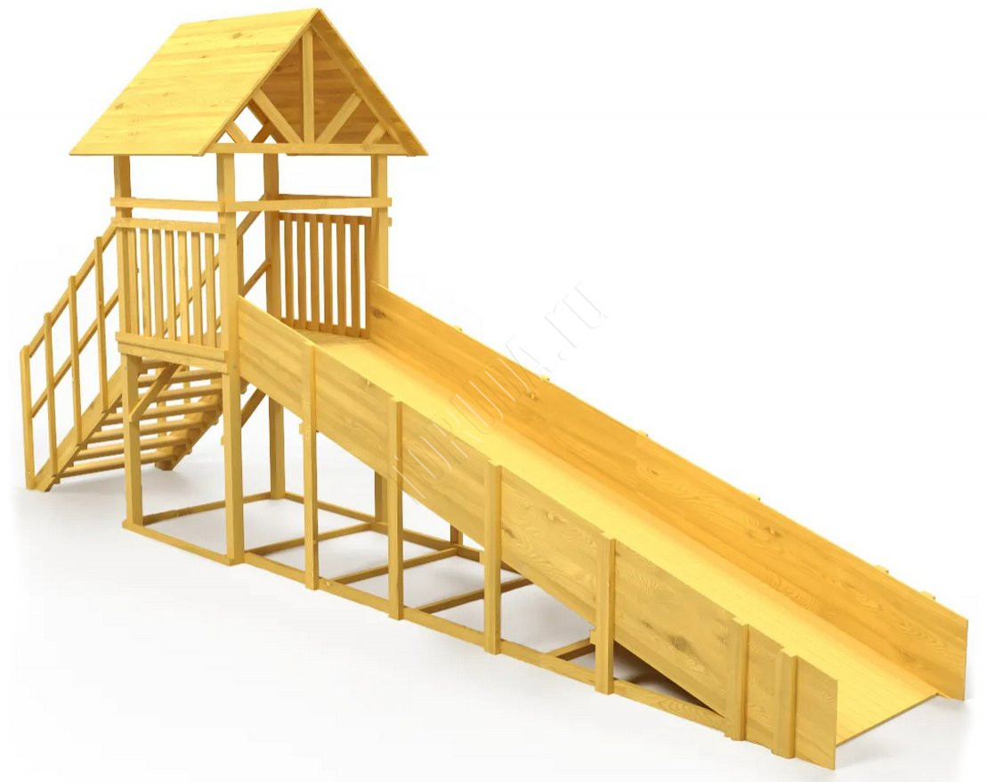 Деревянная зимняя горка длиной 5 метров и шириной 1250 мм. Она идеально подходит для активных игр на тюбингах и ледянках, даря детям радость и драйв. Устойчивый каркас, широкая платформа и деревянная крыша делают модель безопасной и долговечной.