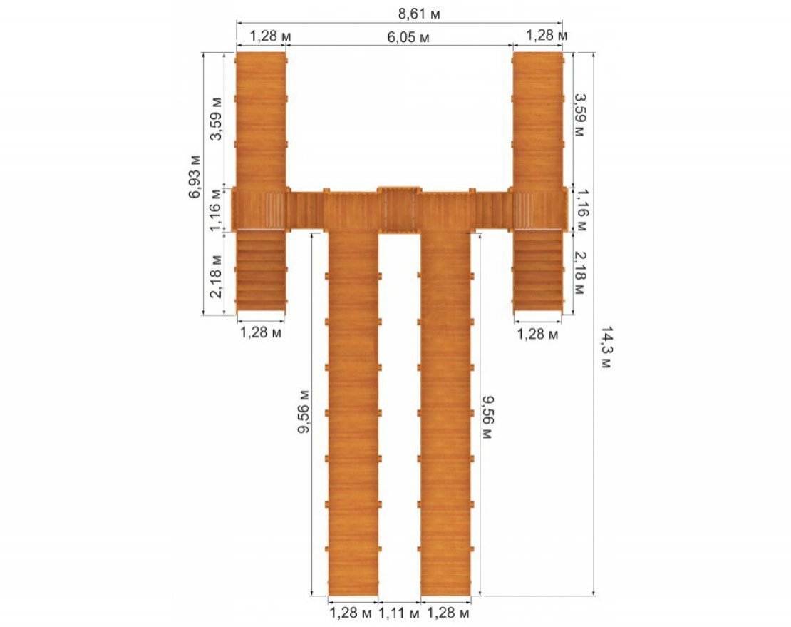 - Представленная деревянная горка отличается высоким уровнем функциональности. В своей комплектации она имеет два больших ската по 10,0 м – они предназначены для детей старшего возраста и взрослых. Два маленьких ската по 4,0 м – идеальны для детей дошкольного и младшего школьного возраста.