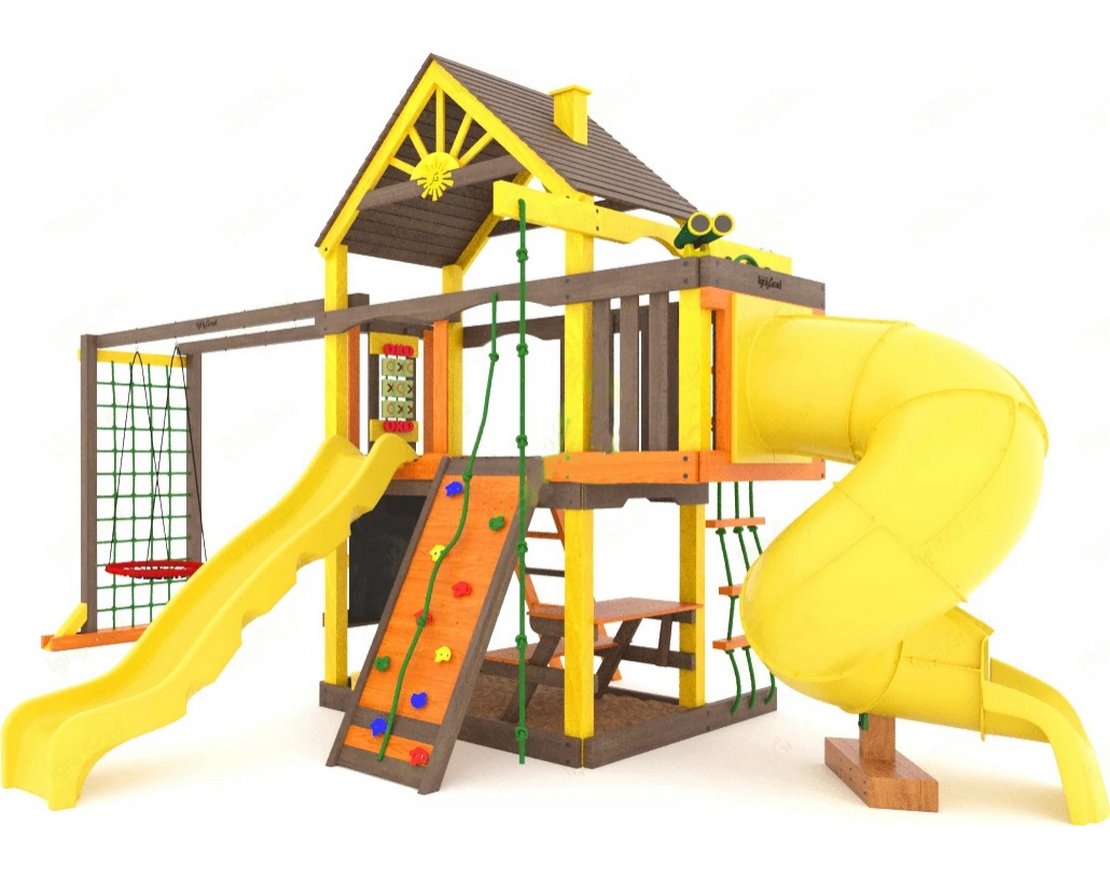 В состав игрового комплекса для детей “Шато с трубой” (Дерево) мод.2 входит: