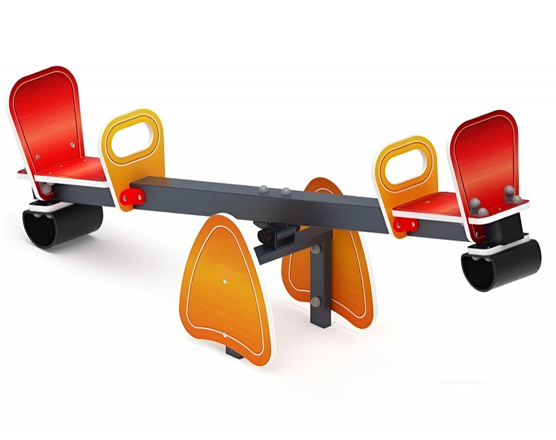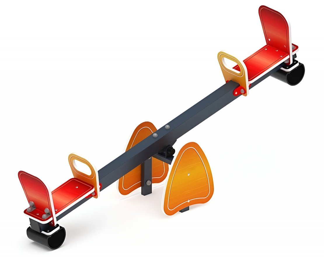 Опора балансира выполнена из профильной трубы квадратного сечения 60х30 мм, а так же скобы крепления, двойной втулки и двух подшипников, окрашена порошковой краской в графитово-серый цвет. Металл имеет плавные радиусы и тщательную обработку швов. На опору балансира крепятся борта качалки, выполненные из влагостойкой фанеры толщиной не менее 18 мм. Борта качалки (2шт.) окрашены в желтый цвет. Габаритные размеры: 370х400х735 мм.
