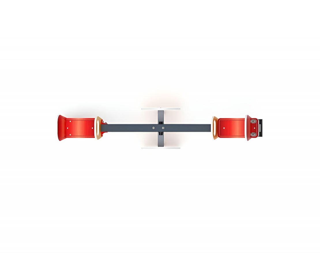 Балка выполнена из профильной трубы квадратного сечения 80х80 мм и окрашена порошковой краской в графитово-серый цвет, крепится к опоре балансира. К балке крепятся сиденья, ручки, спинки, депфер. Размеры: 2080х80х80 мм.