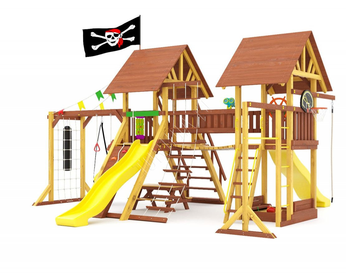 Площадка Галиот 8 обладает довольно широким функционалом (который по желанию можно легко расширить). А на качелях могут кататься даже родители! Детская площадка предназначена для дачи, коттеджа.