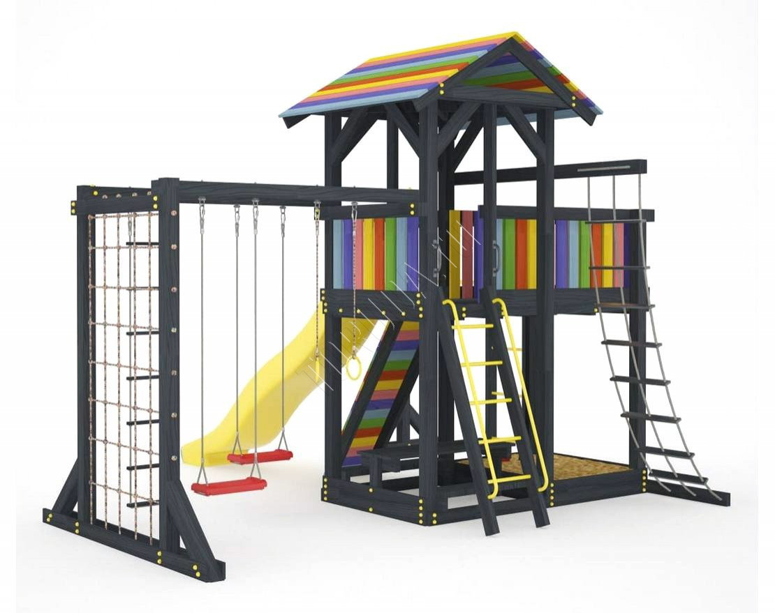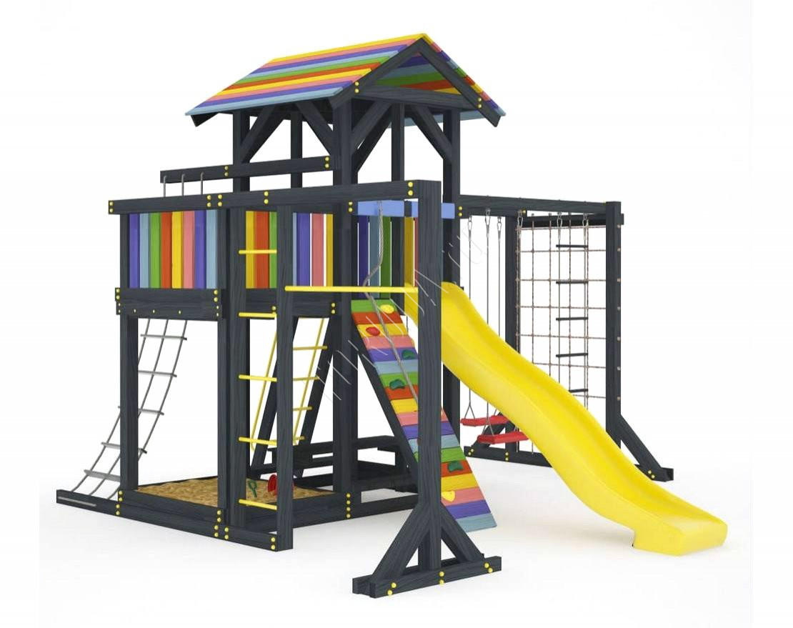 Детская площадка обладает довольно широким функционалом, предназначена для дачи, коттеджа.