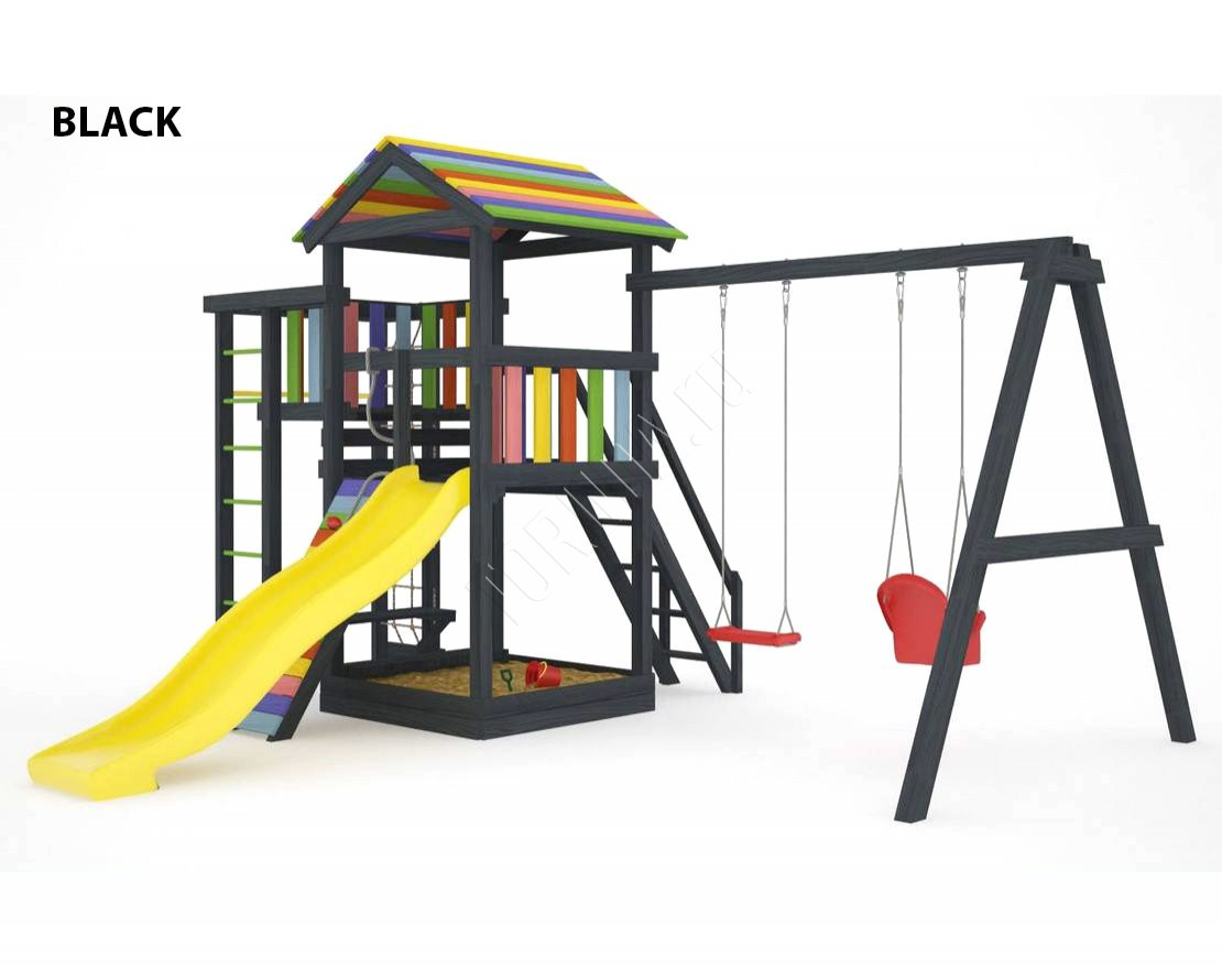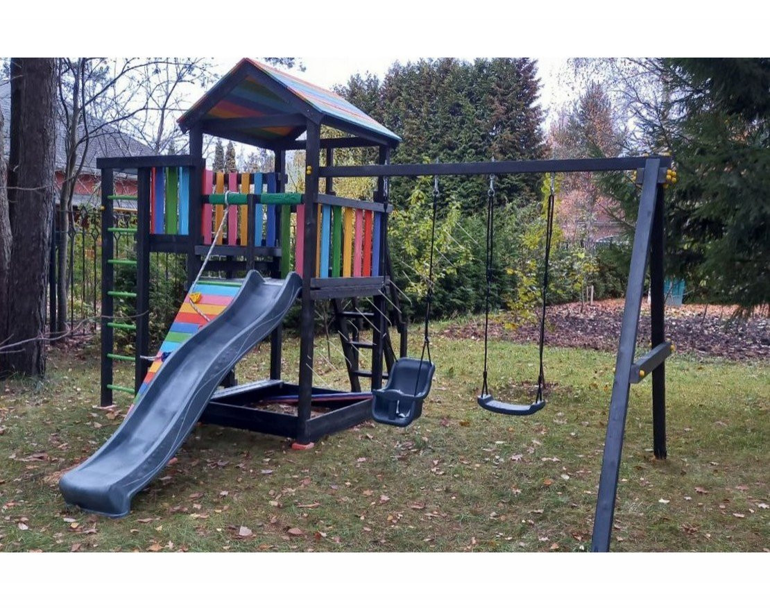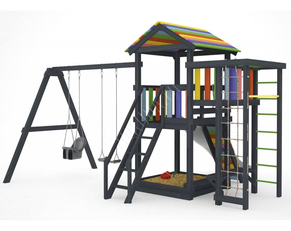 Детская площадка обладает довольно широким функционалом, предназначена для дачи, коттеджа.