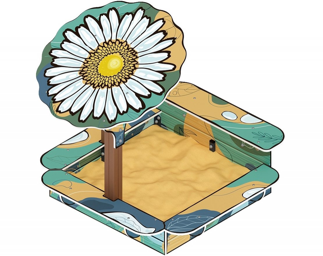 Выполнен из влагостойкой фанеры толщиной не менее 18 мм, кромки фанеры тщательно шлифованы, окрашен с нанесением рисунка (Цветок). Размер 1180х1180.