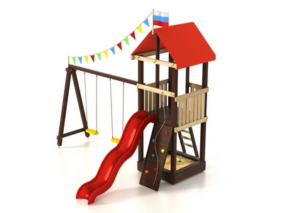 Для максимальной защиты ребёнка от травм, все углы имеют закруглённую форму, крепеж надежно скрыт пластиковыми заглушками. Опоры изготовлены из клееного бруса толщиной 90*90 мм.