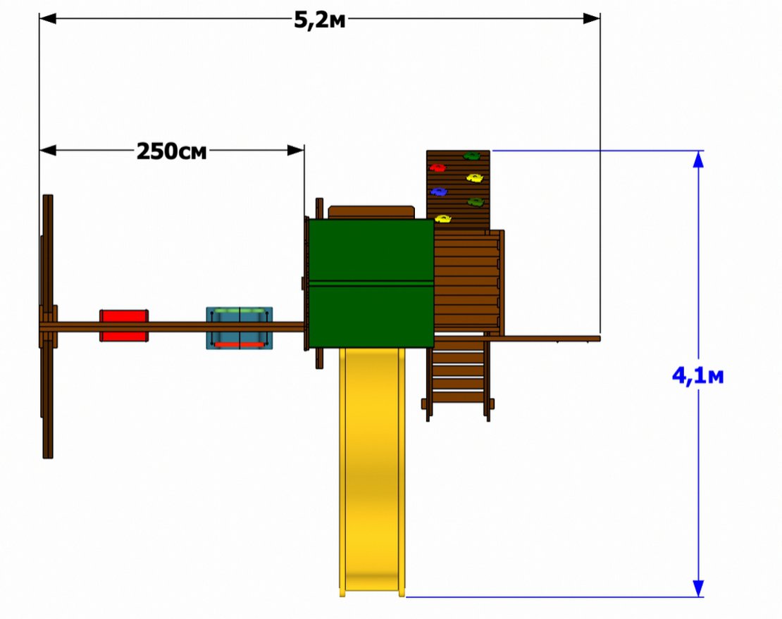 - Комплекс дополнен качелями, одно из 2 сидений предназначено для детей до 3-х лет.