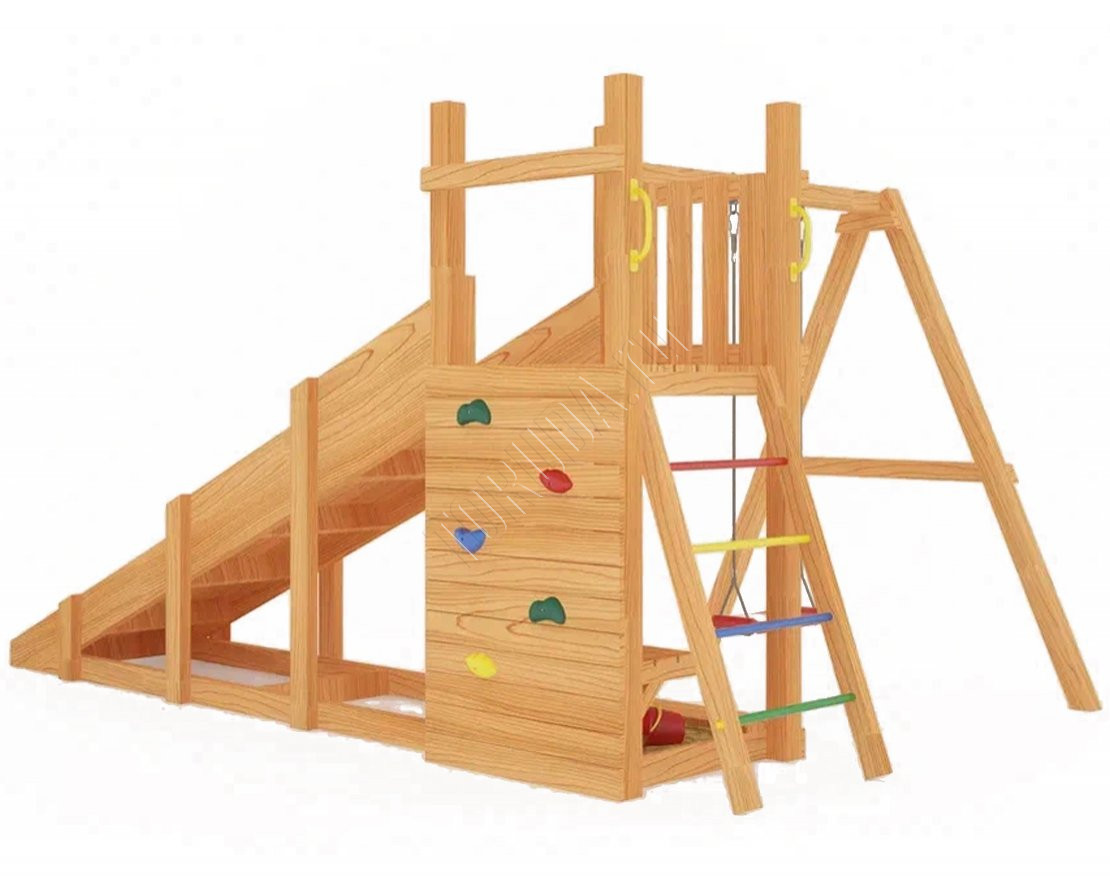 Площадка с качелями (всесезонная) наполнит досуг детей энергией и радостью. Она компактная и займёт всего лишь несколько квадратных метров участка дачного или загородного дома. Покрытие с антисептиком защитит натуральные составляющие от непогоды (наносится самостоятельно).