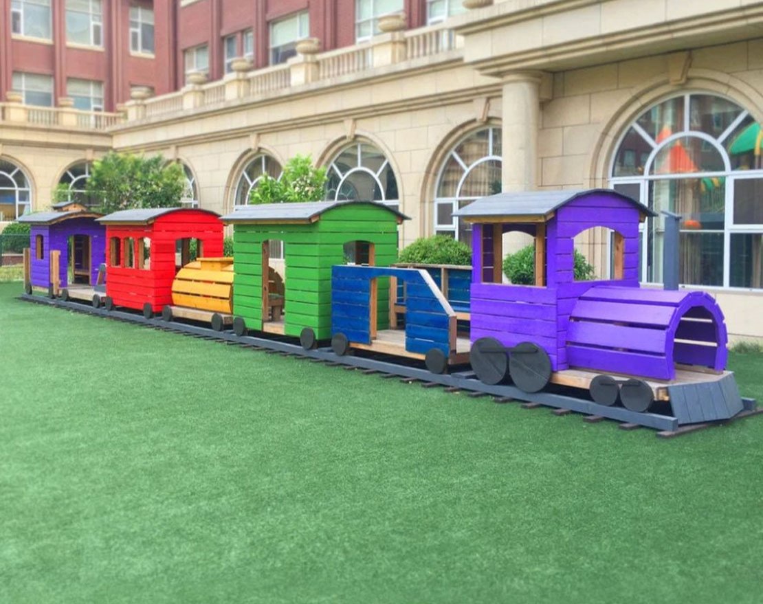 Игровой поезд состоит из 7 уникальных вагонов, каждый длиной 213см. и шириной 122см., а общая длина поезда почти 15 метров! Каждый из них предлагает что-то свое, с чем дети могут взаимодействовать и все они доставляют массу удовольствия. Осуществите мечту вашего ребенка, пусть у него будет свой собственный, персональный локомотив на игровой площадке!