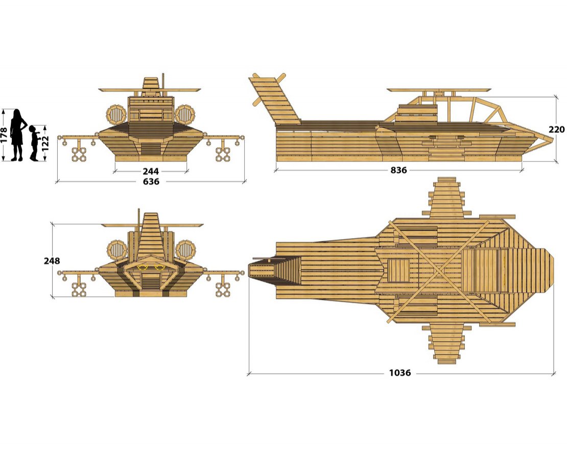 Игровой комплекс, оформленный в военной тематике, внешне похож на Boeing AH-64. Он имеет множество особенностей и деталей.