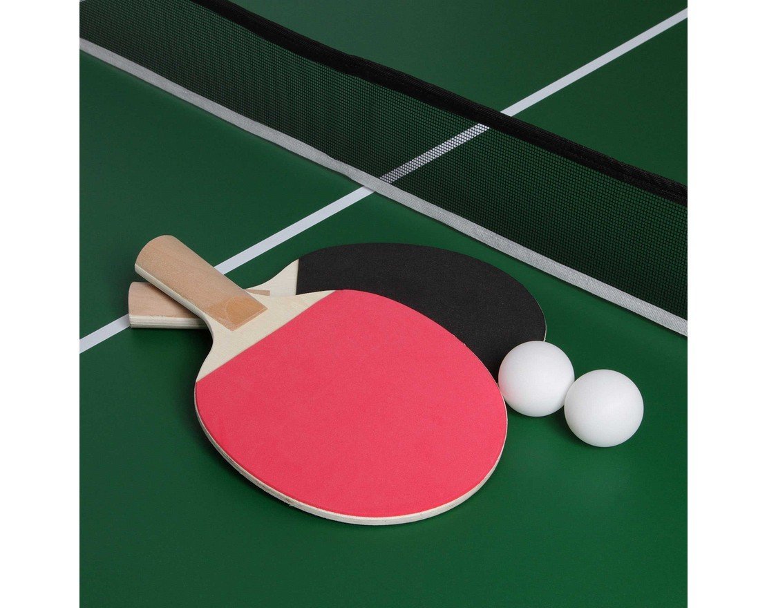 Обратная сторона теннисного игрового поля имеет ламинированную поверхность и может быть использована как столешница письменного или обеденного стола, а также как основание для всех дополнительных игр комплекта.