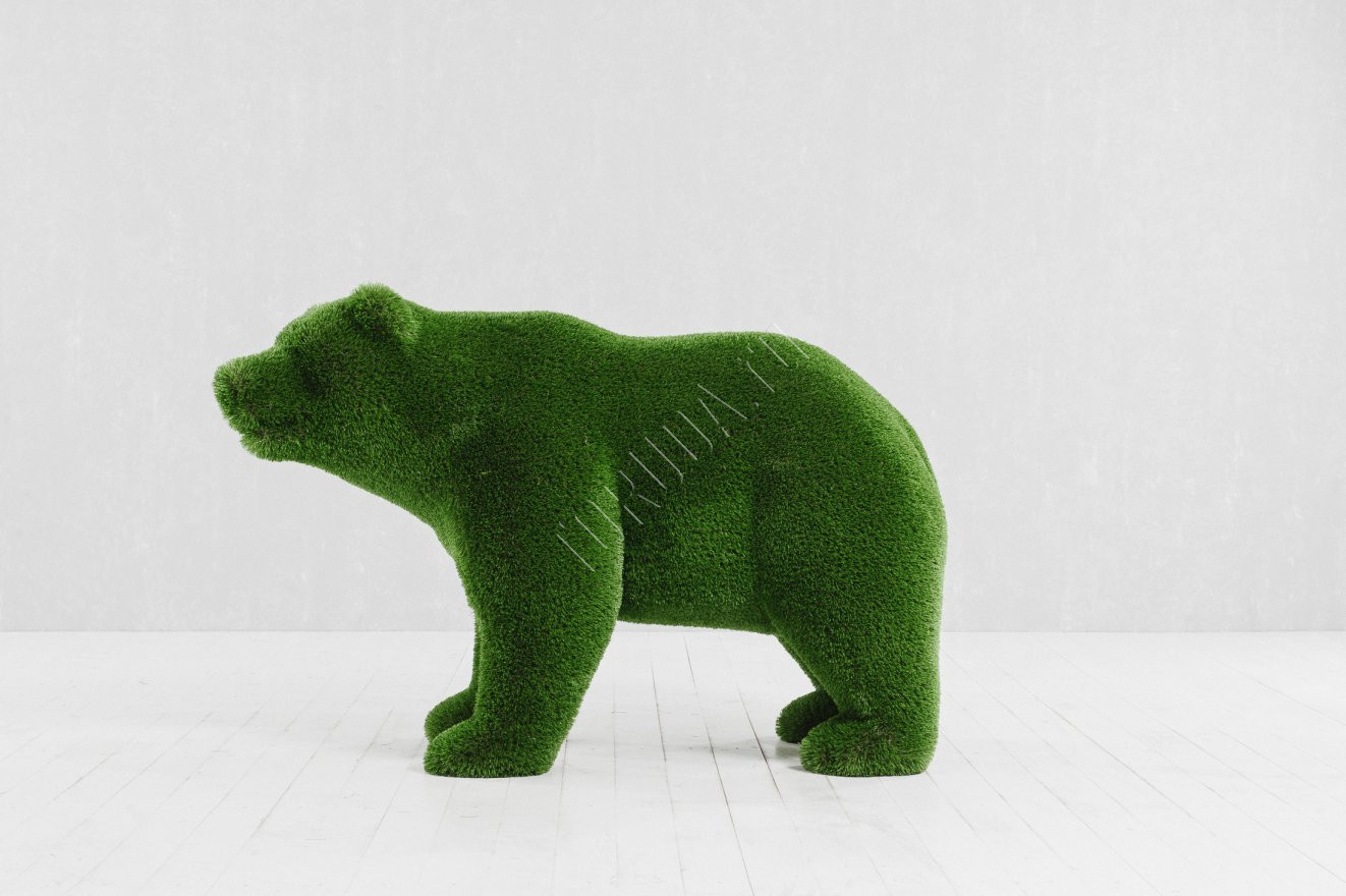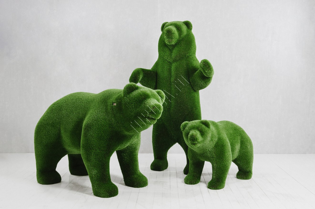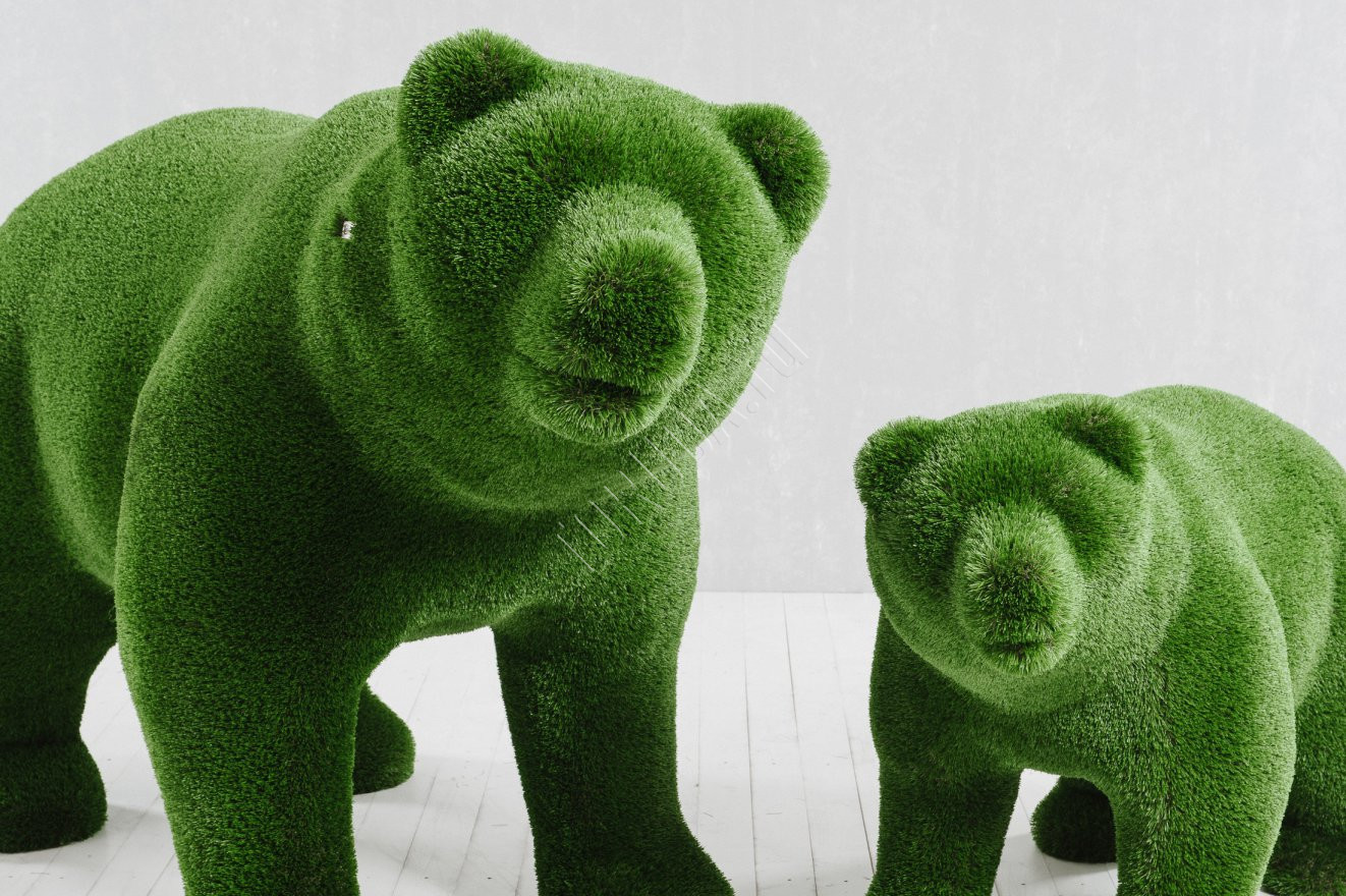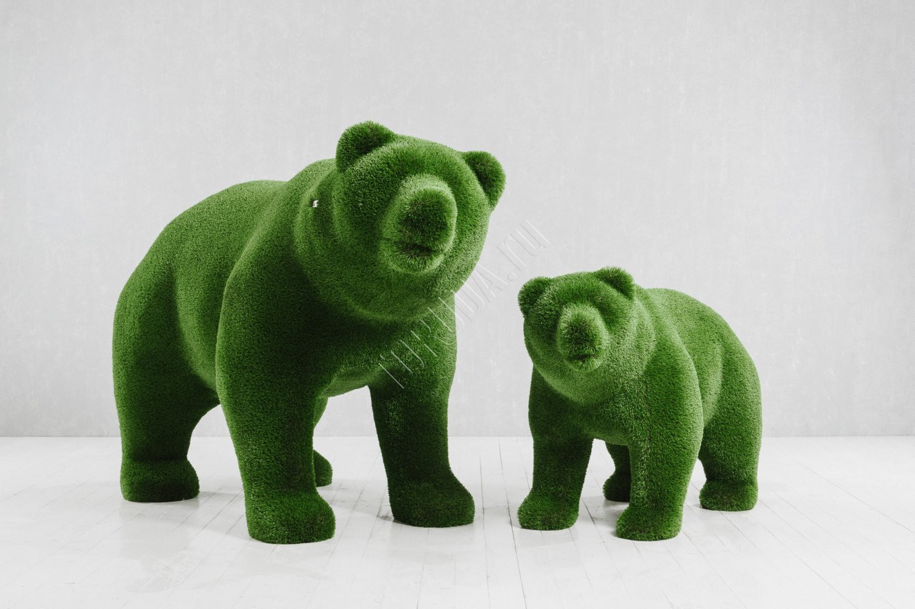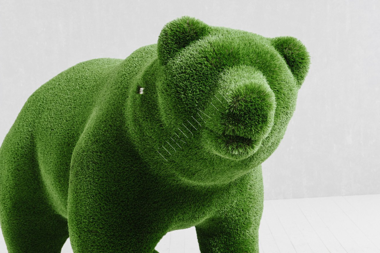 Объемная зеленая фигура медведя приспособлена к различным погодным условиям, не гниет и не преет, устойчива к солнечному излучению, не прихотлива в уходе, не требует полива и стрижки надолго, сохраняет первозданный вид, оставаясь вечно зеленой и зимой и летом.