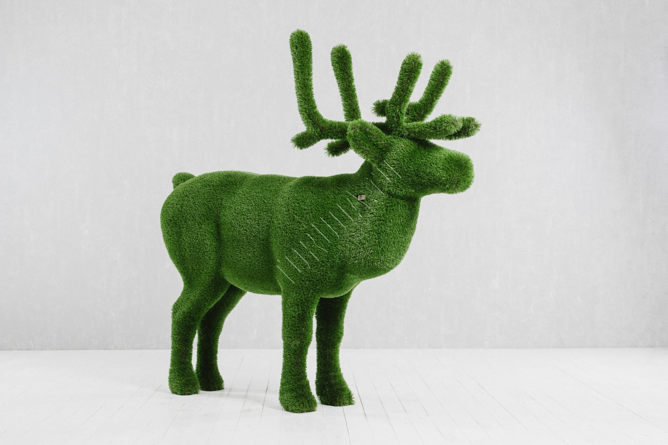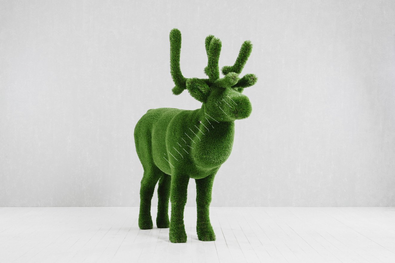 Топиари олень — это ландшафтная фигура крупных размеров, сделанная из сверх прочного стекловолокна и сверху обшита искусственным газонным покрытием высокого качества. Устанавливается для украшения современных ландшафтных территорий. Идеально вписывается в любой интерьер, привлекая к себе неравнодушные взгляды Ваших гостей и посетителей. Великолепно будет выглядеть у входа в ресторан или на хорошо выстриженной клумбе.