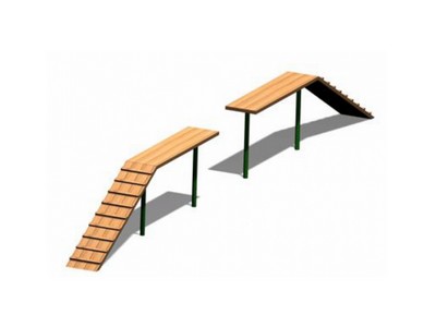 Трамплин состоит из металлического каркаса, окрашенного полимерно-порошковой краской, устойчивой к воздействию неблагоприятных погодных условий и ультрафиолета, бруса шириной 200 мм, (имитируя разорванный мост) и двух трапов с ребристой поверхностью. Все деревянные элементы покрываются текстуролом на предварительно подготовленную поверхность. Длина 6000 мм, ширина 300 мм, высота 1000 мм, глубина бетонирования 600 мм.