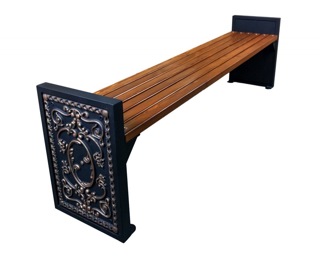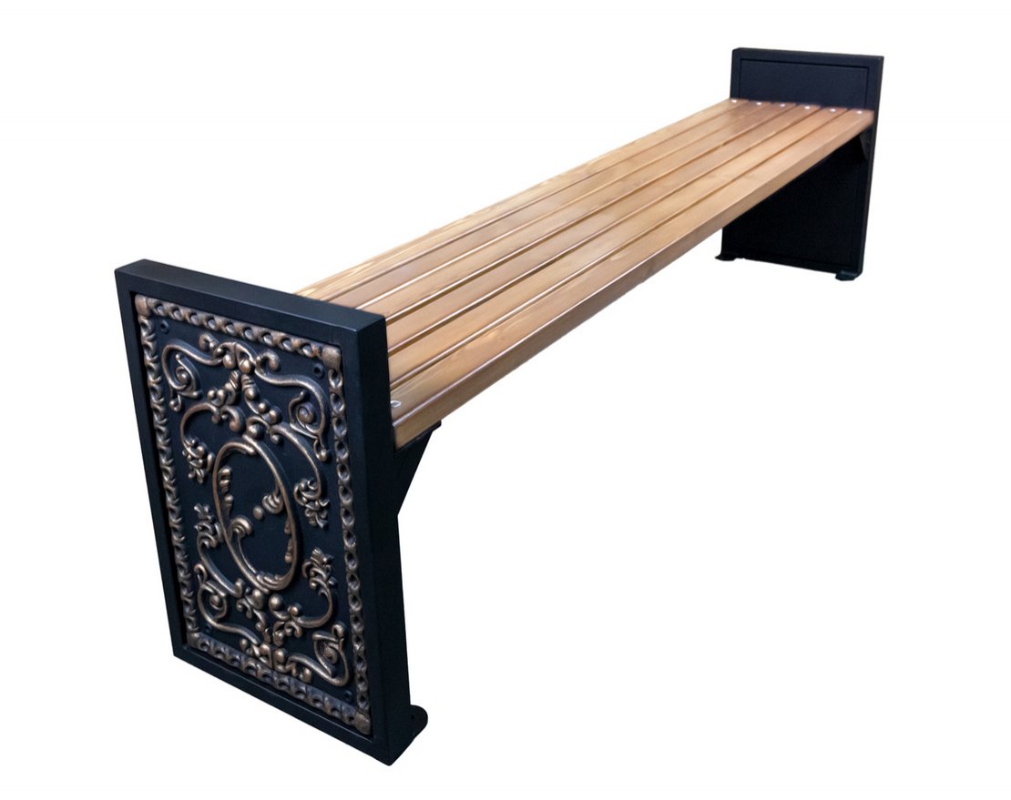 Изящная банкетка «Ампир» станет украшением городского сада или загородного участка. Сидение из бруса ангарской сосны 30х60 миллиметров удобно для отдыха.