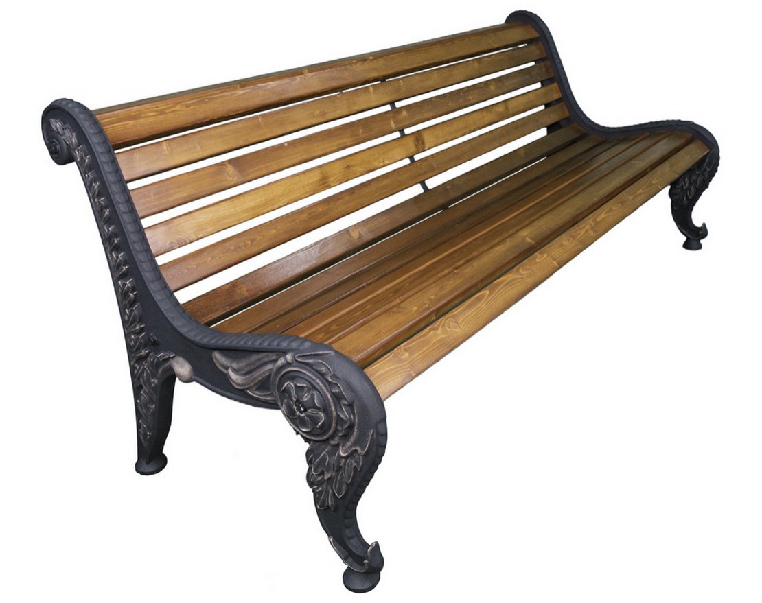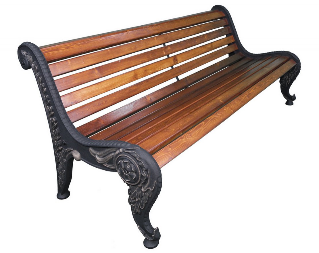 Скамейка Астра отличается продуманным дизайном, плавностью линий, надежностью и долговечностью. Устойчивость конструкции обеспечивают массивные опоры из художественного чугунного литья. Сиденье и спинка выполнены из лиственницы, обработанной современными лакокрасочными материалами. Плавный переход от сиденья к спинке обеспечивает сидящим максимальный комфорт.