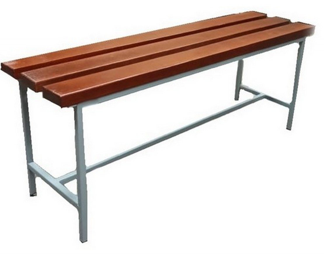 Скамейка без спинки, может быть использована в раздевалках для переодевания сотрудников предприятий, спортивных, школьных и дошкольных учреждениях, в бассейнах и фитнес-центрах.