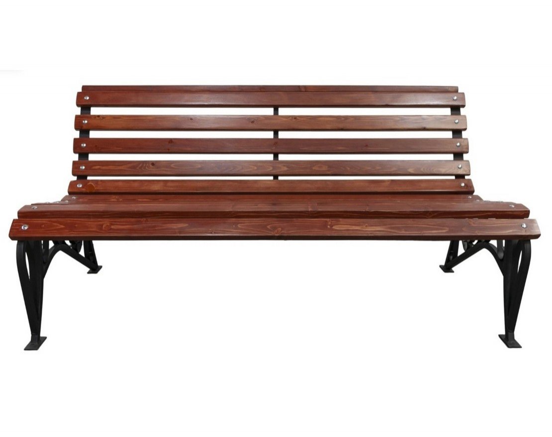 Спинка и сидение садовой скамейки составляют единое целое. Такое дизайнерское решение не только придает лавочке изящный внешний вид, но и способствует комфортному отдыху.