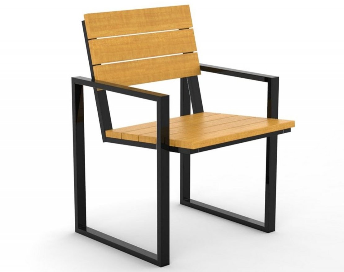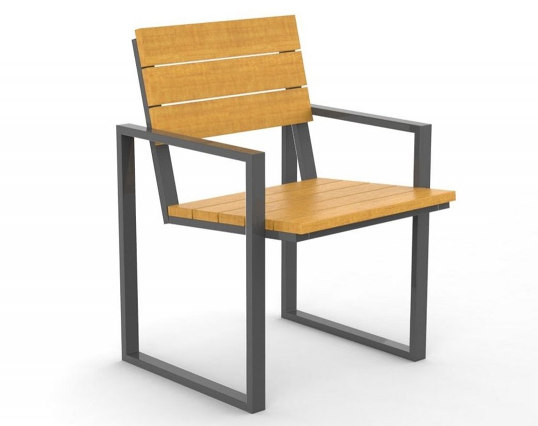 Кресло предназначено для отдыха в парках, на детских площадках, во дворе и в различных местах отдыха. Кресло представляет собой цельносварной металлический каркас и сиденье со спинкой из бруса.