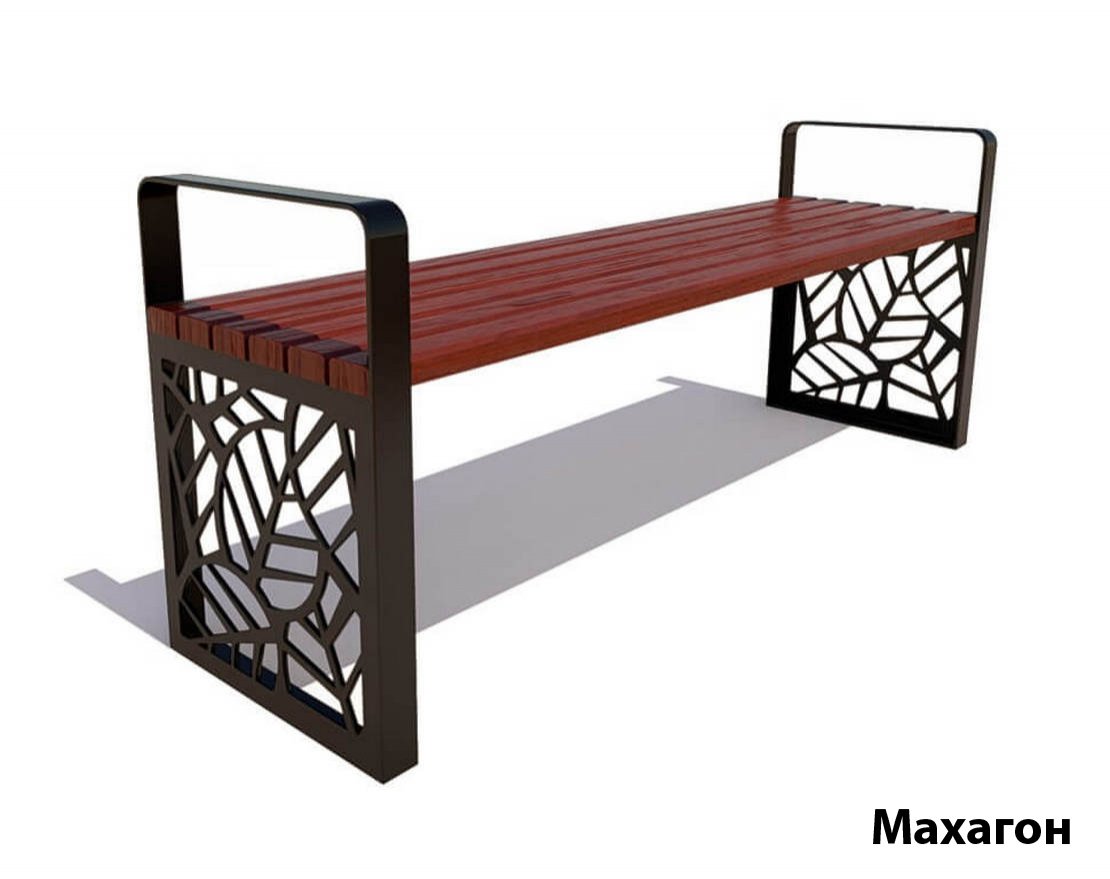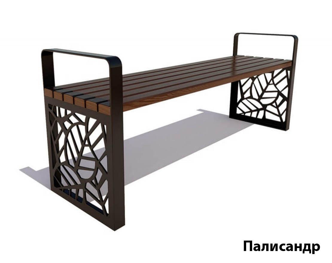 Выполненные из листовой стали опоры украшены оригинальным узором и покрыты порошковой краской, обеспечивающей прекрасную износостойкость. Сидение, изготовленное из древесины хвойных пород, обработано инновационными средствами, защищающими его от влияния окружающей среды и механической деформации.