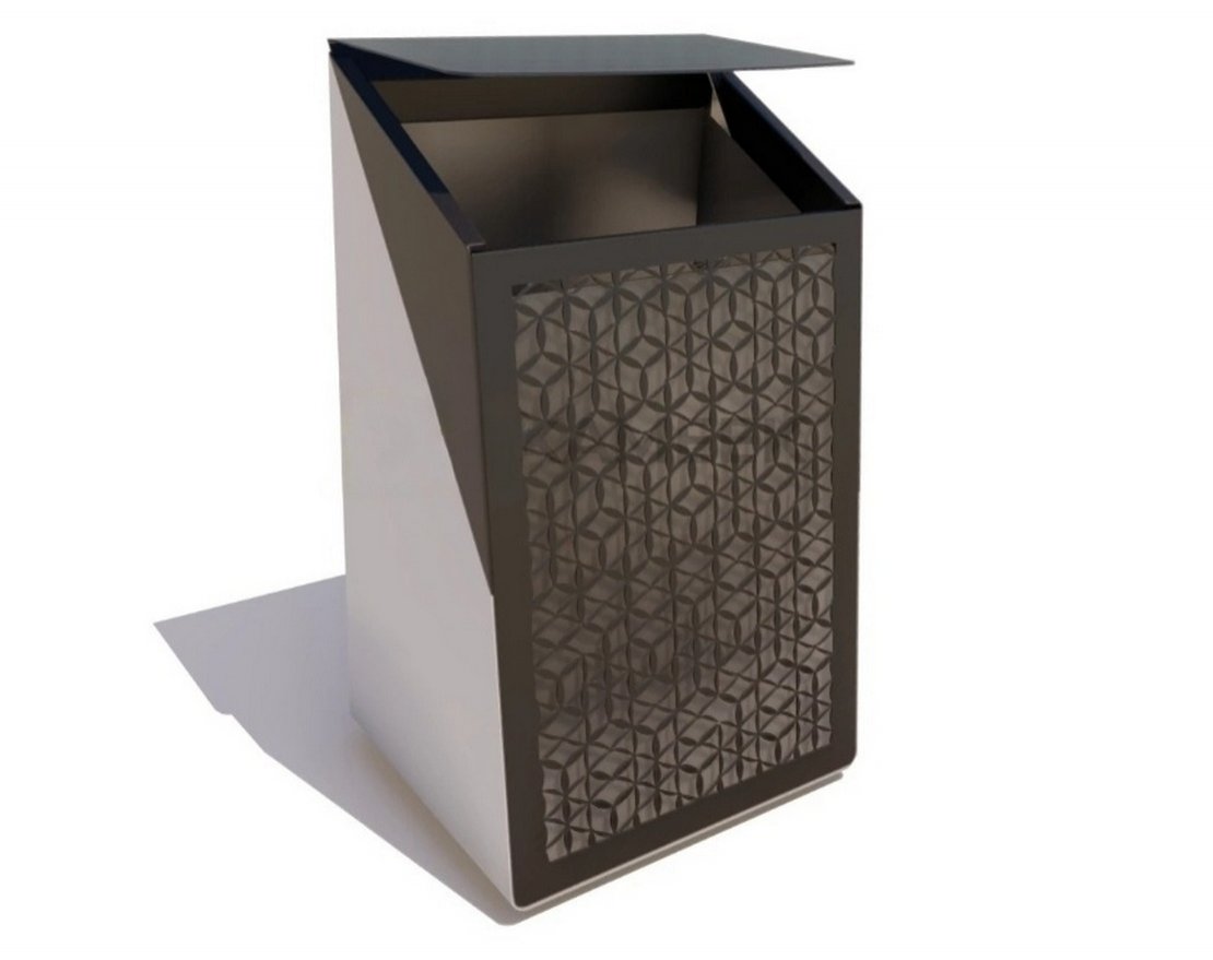 Создавать комфорт на улицах, в парках и других общественных местах помогают практичные урны, которые, к тому же, замечательно вписываются в городской ландшафт. Уличная урна «Концепт Уно» выделяется необычным дизайном. Фронтальная часть стального корпуса декорирована ажурным орнаментом в виде геометрических мотивов. Такое дизайнерское решение визуально облегчает конструкцию. Другая изюминка модели — контрастное сочетание цветов. Фронтальная часть изделия, его крышка, расположенная под углом, и треугольные фрагменты по бокам отличаются по цвету от остальных частей. Купить урны «Концепт Уно» можно в двух цветовых вариантах.