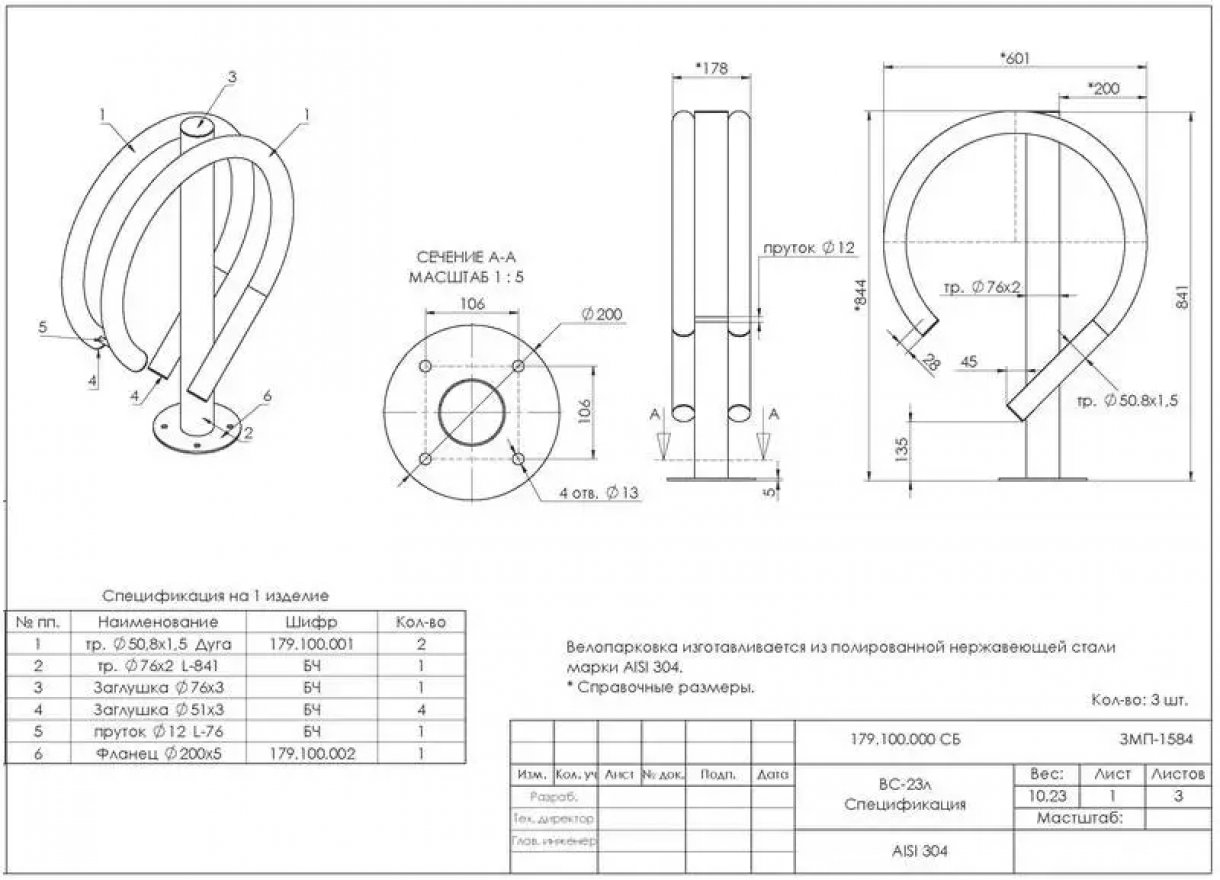 Велопарковка Дабл 2 места VP20A (Нержавеющая сталь)