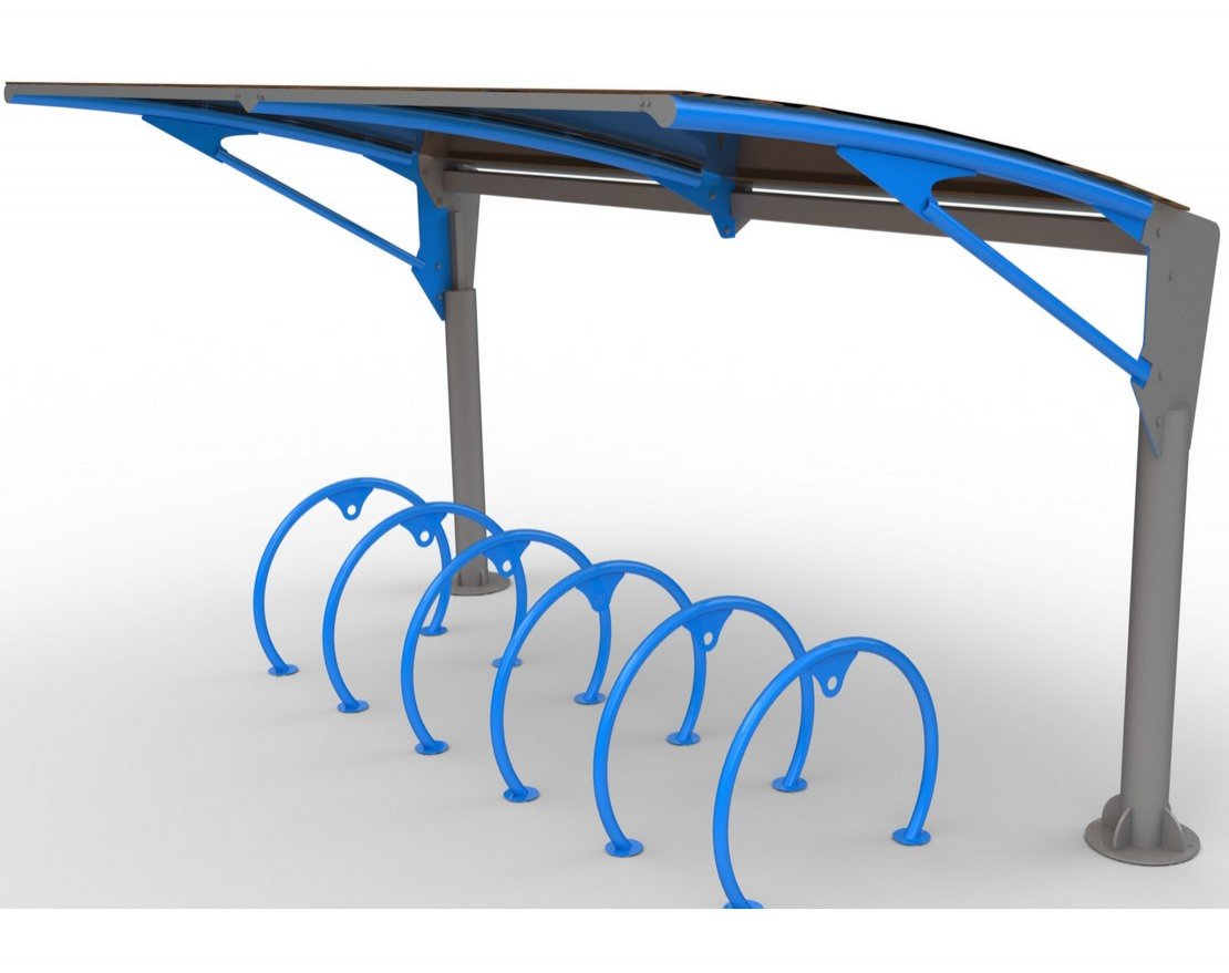 Велопарковка с навесом "Сицилия" устанавливается возле офисных зданий, торговых центров и других городских локаций. Обеспечивает упорядоченное размещение велотранспорта, защищая от осадков и ультрафиолета.